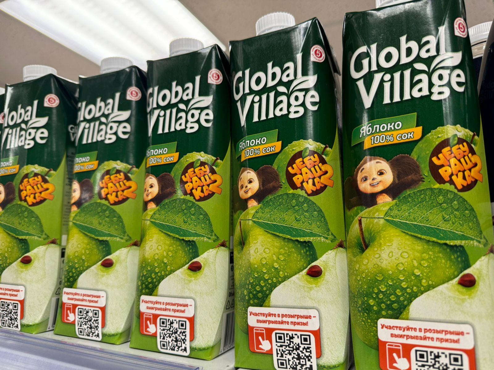 «Пятёрочка» также разработала для ряда продукции собственных торговых марок особенную упаковку с изображением Чебурашки. Каждая бутылка, пачка или коробка словно несёт его дружелюбный привет.