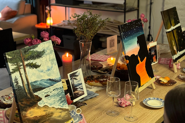 • Картина акрилом или маслом. Многие приходят просто попробовать, даже если в последний раз держали кисть ещё в школе. Здесь не важно, умеете ли вы — важно, что в конце занятия у вас будет своя первая работа.