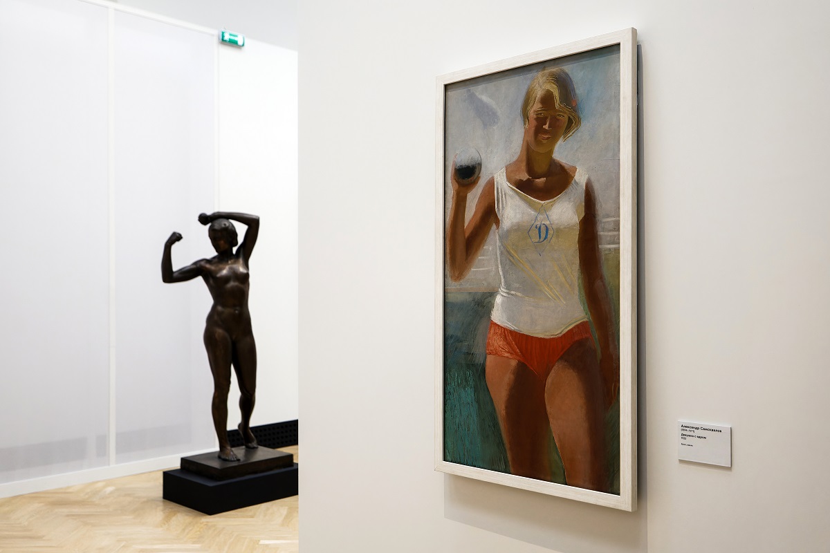 Следующий раздел — «Спорт». На картинах Александра Самохвалова здоровые, румяные, полнотелые девушки радуются свой физической силе и молодости. Дополняют тему работы Елены Янсон-Манизер и Матвея Манизера. Они были учителями известных калининградских скульпторов, супругов Моргуновых. Сразу приковывает взгляд фигура конькобежки. Скульптура изображает трёхкратную чемпионку мира Марию Исакову: кажется, что она вот-вот проскользит мимо на огромной скорости.