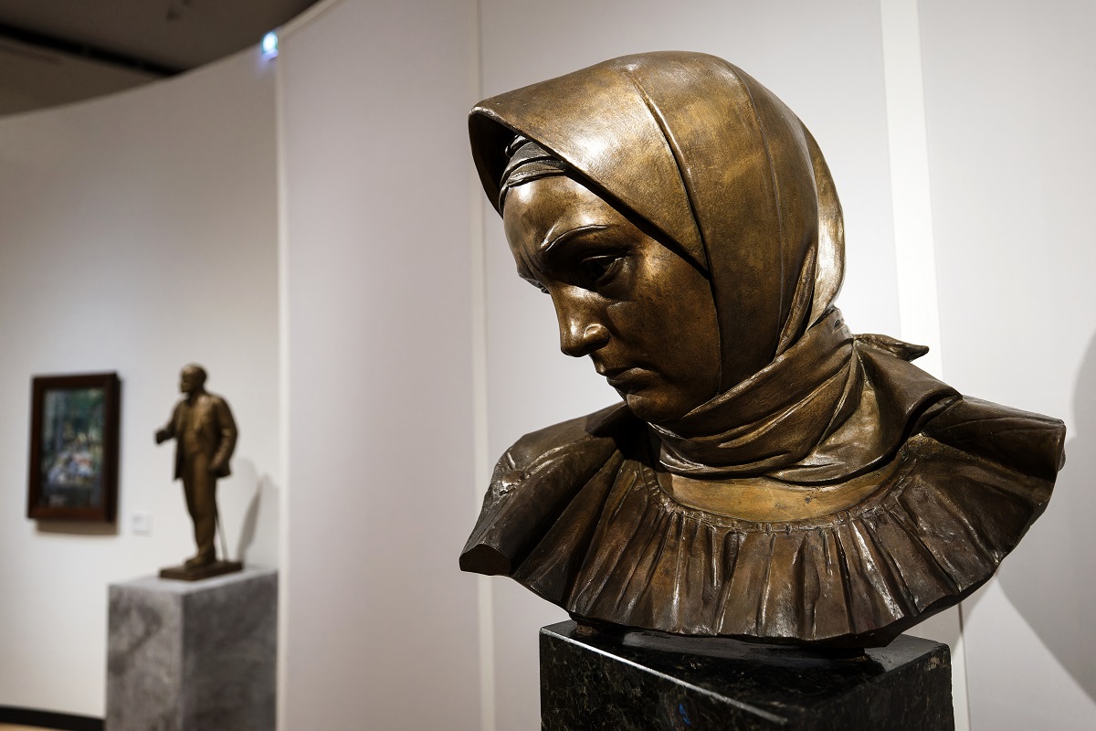 Ещё один раздел — «Люди и судьбы». Здесь можно увидеть героев своего времени, учёных и пролетариев. Центральная работа — автопортрет Фёдора Богородского в образе моряка. Именно он основал художественный факультет ВГИКа, на котором преподавал Юрий Пименов и учились калининградцы Михаил Пясковский и Николай Карякин. А кульминационной точкой выставки становится скульптурный портрет Зои Космодемьянской — от личных историй экспозиция приходит к воплощению судьбы всего народа.