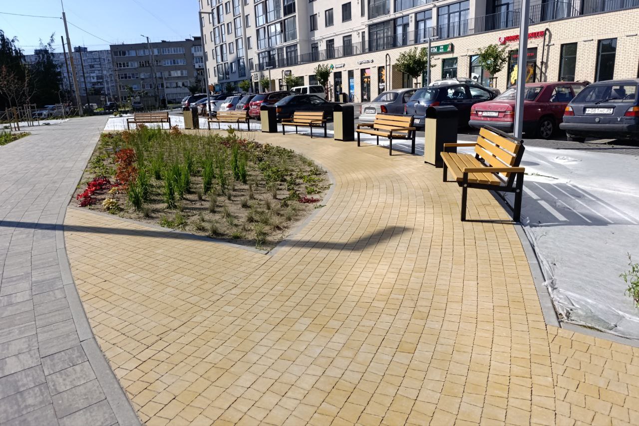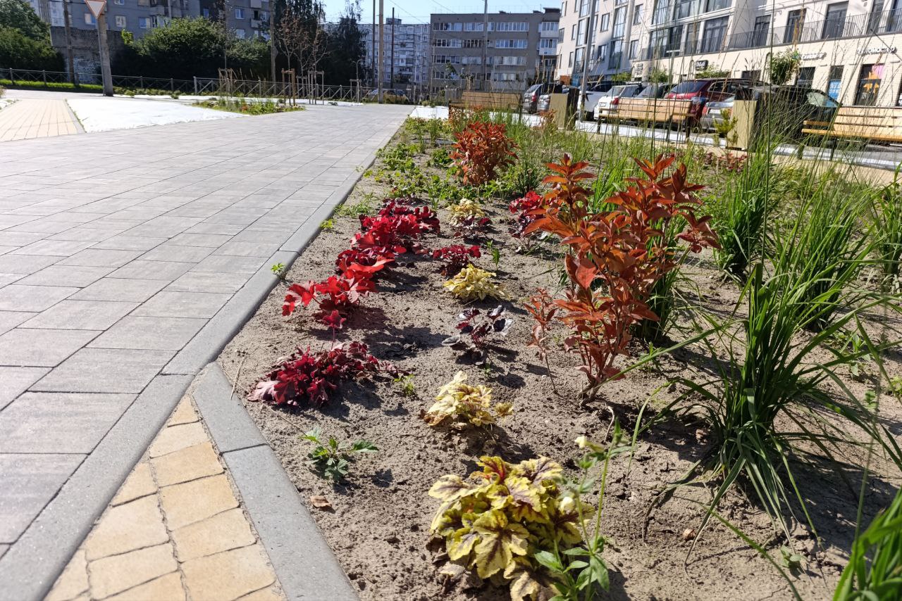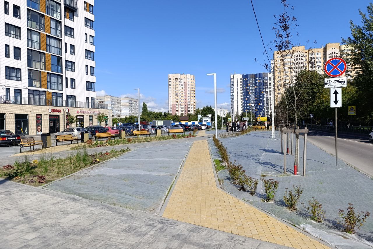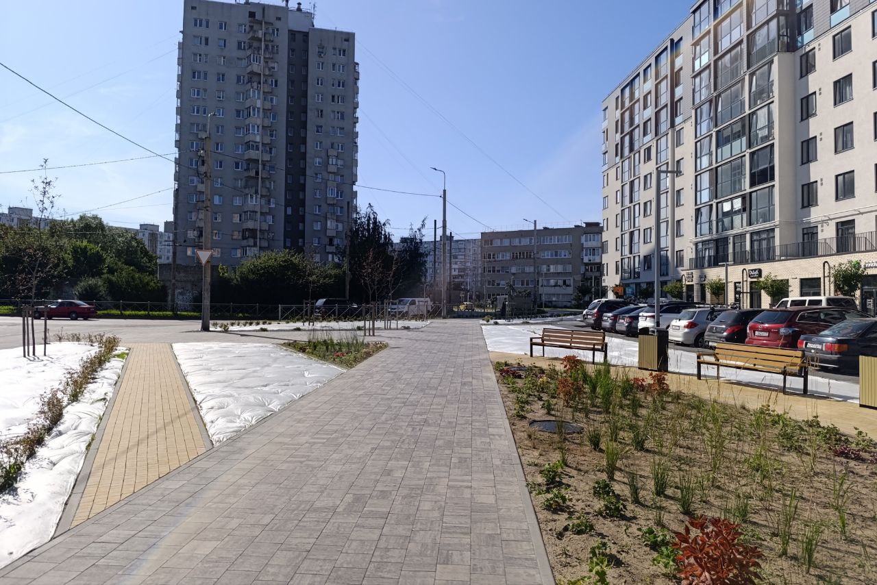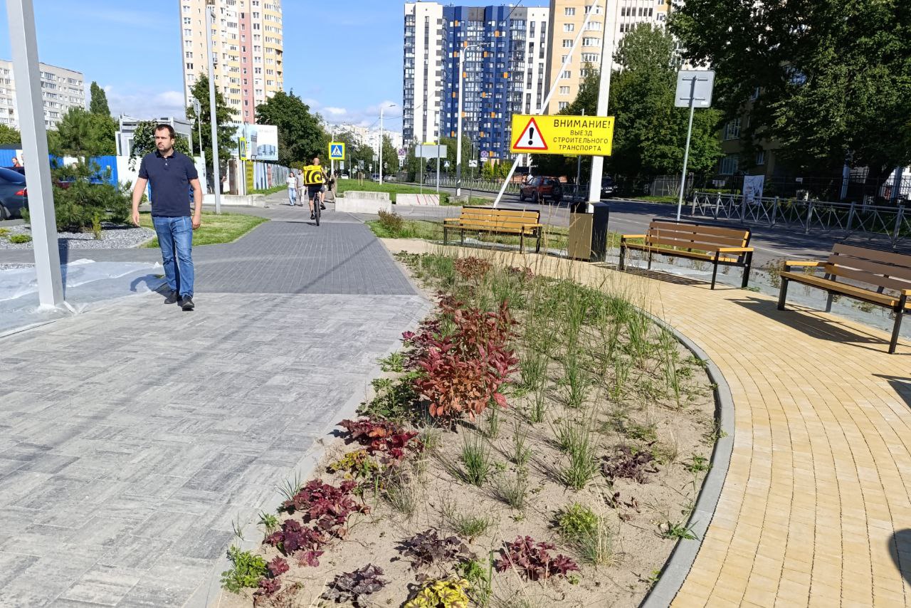 Площадь участка составляет более 2000 квадратных метров. Здесь обустроили пешеходные дорожки, освещение, установили скамейки и урны, провели озеленение. В ближайшее время планируют высадить большие деревья.
