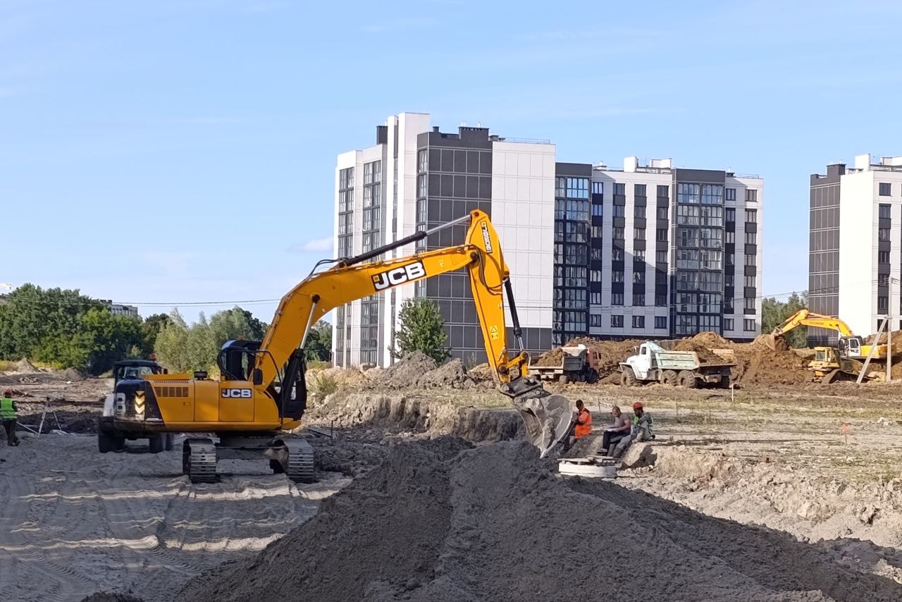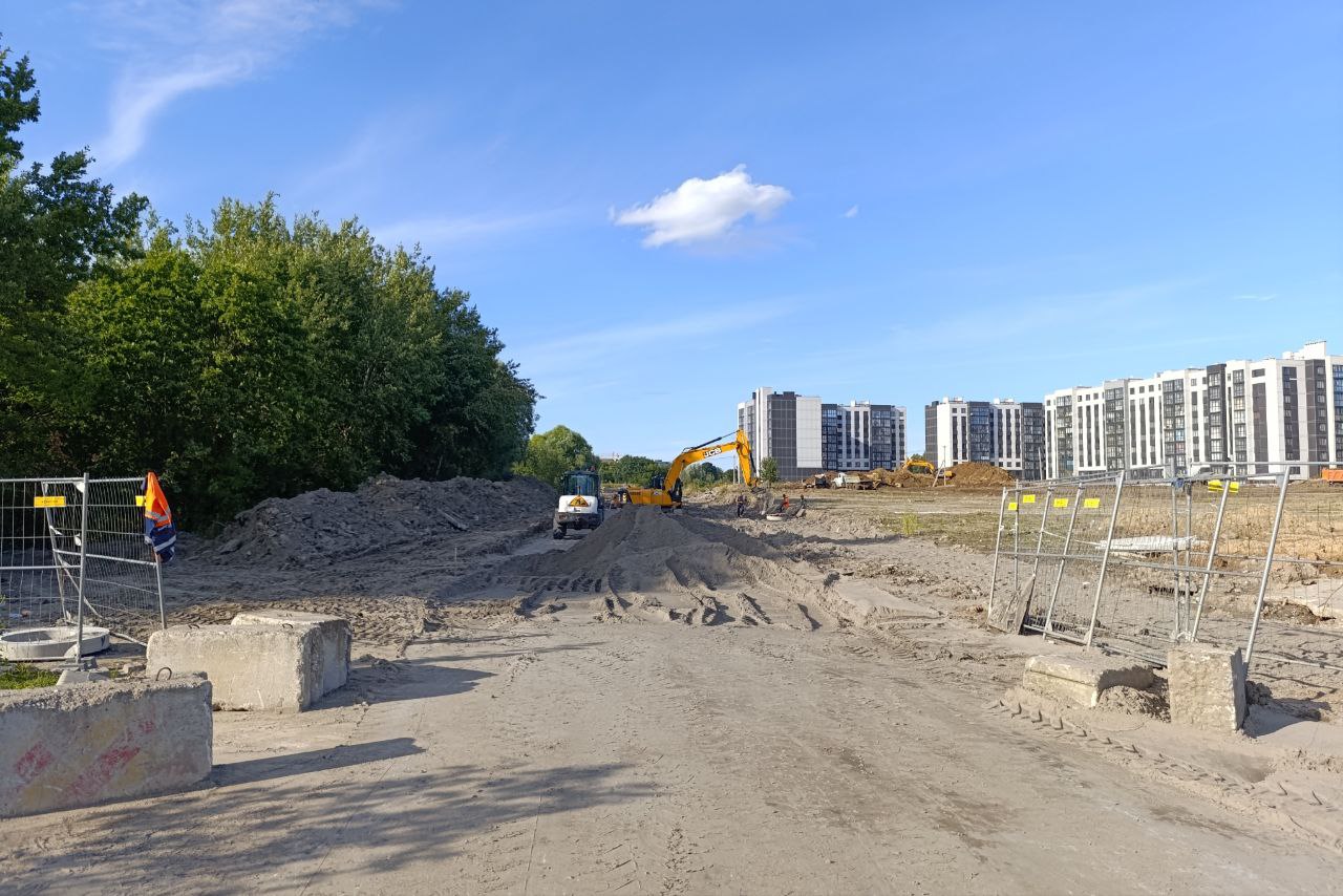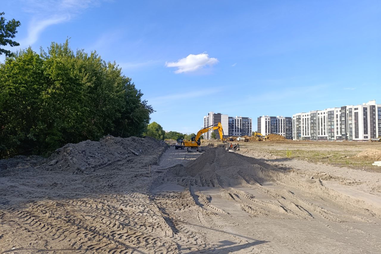В настоящее время на объекте работает несколько единиц техники и около десяти человек. Площадка примыкает к месту строительства школы на улице Мариенко.