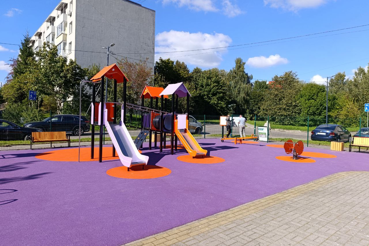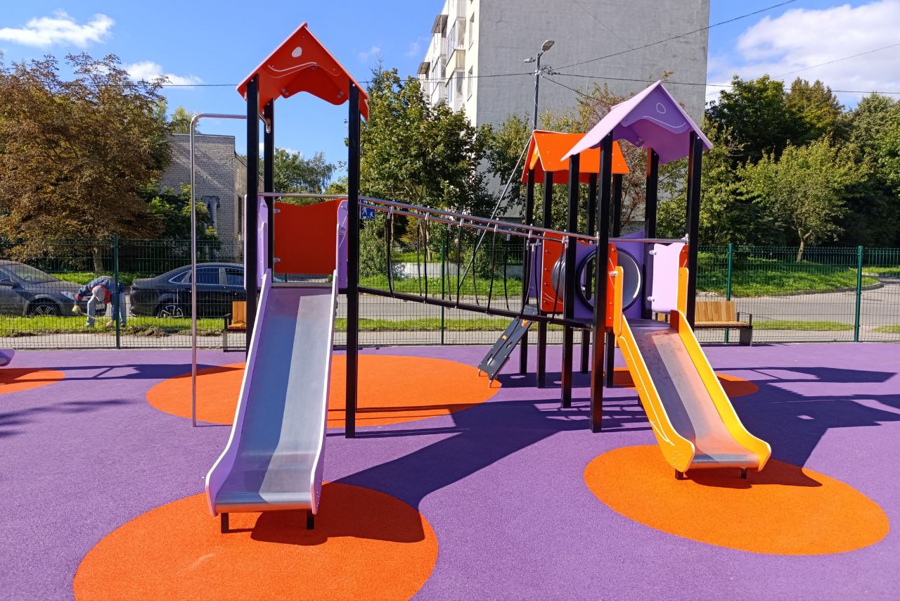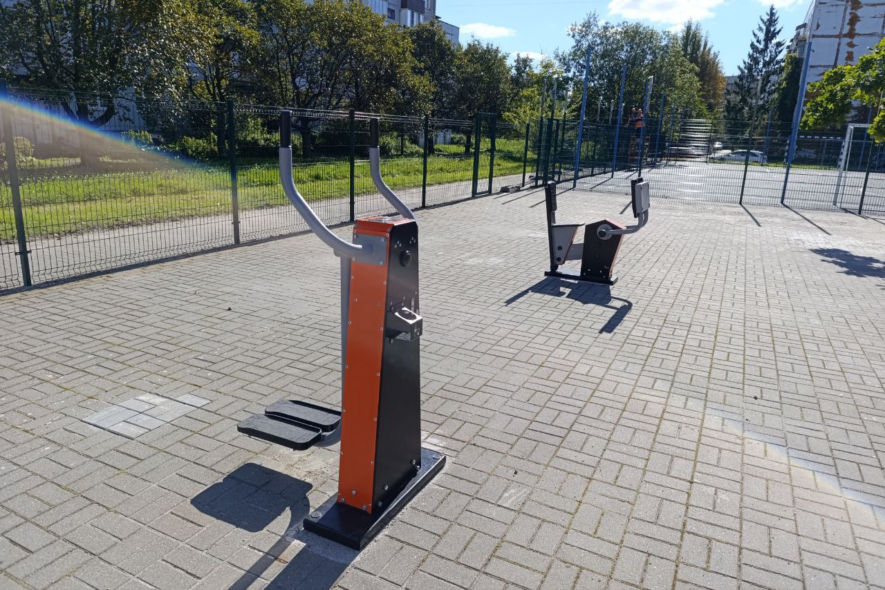 Специалисты полностью заменили покрытие, установили игровое оборудование на детской площадке и новый инвентарь на спортивной. Сейчас монтируются последние секции ограждения.