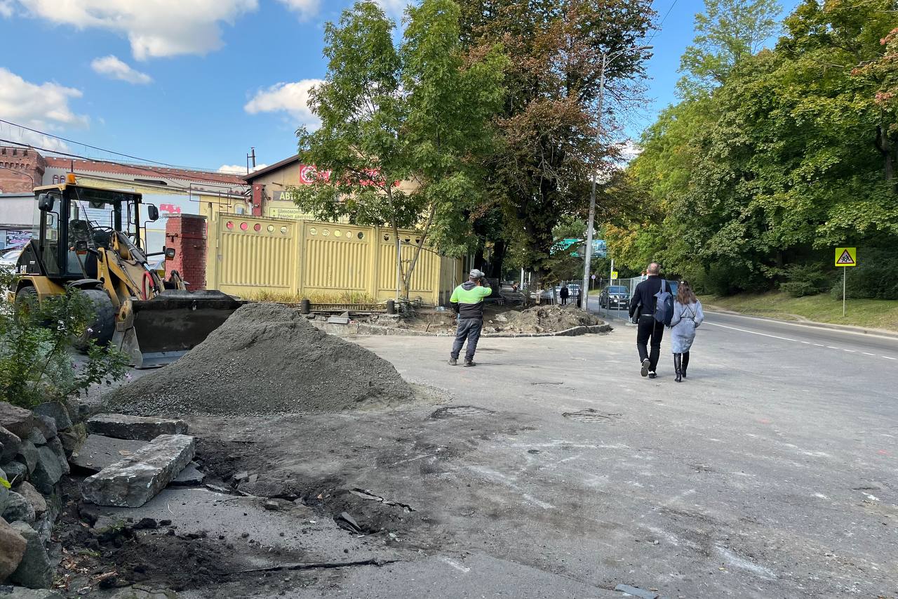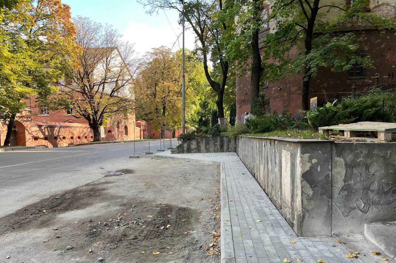 В Калининграде начали ремонт тротуара на Литовском валу. Работы выполняют на участке от переулка Грига до Московского проспекта.