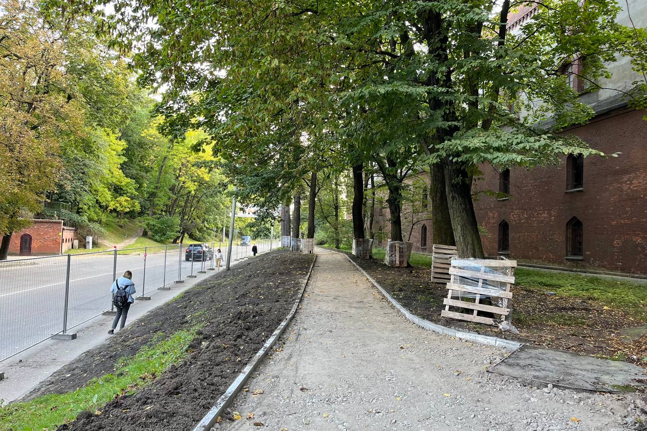 Как передаёт корреспондент Калининград.Ru, подрядчик демонтирует старое покрытие и обустраивает основание под новый тротуар. На пешеходной части уложат асфальт. На Литовском валу также проведут регулировку бортового камня, обустроят заезды и выполнят озеленение.