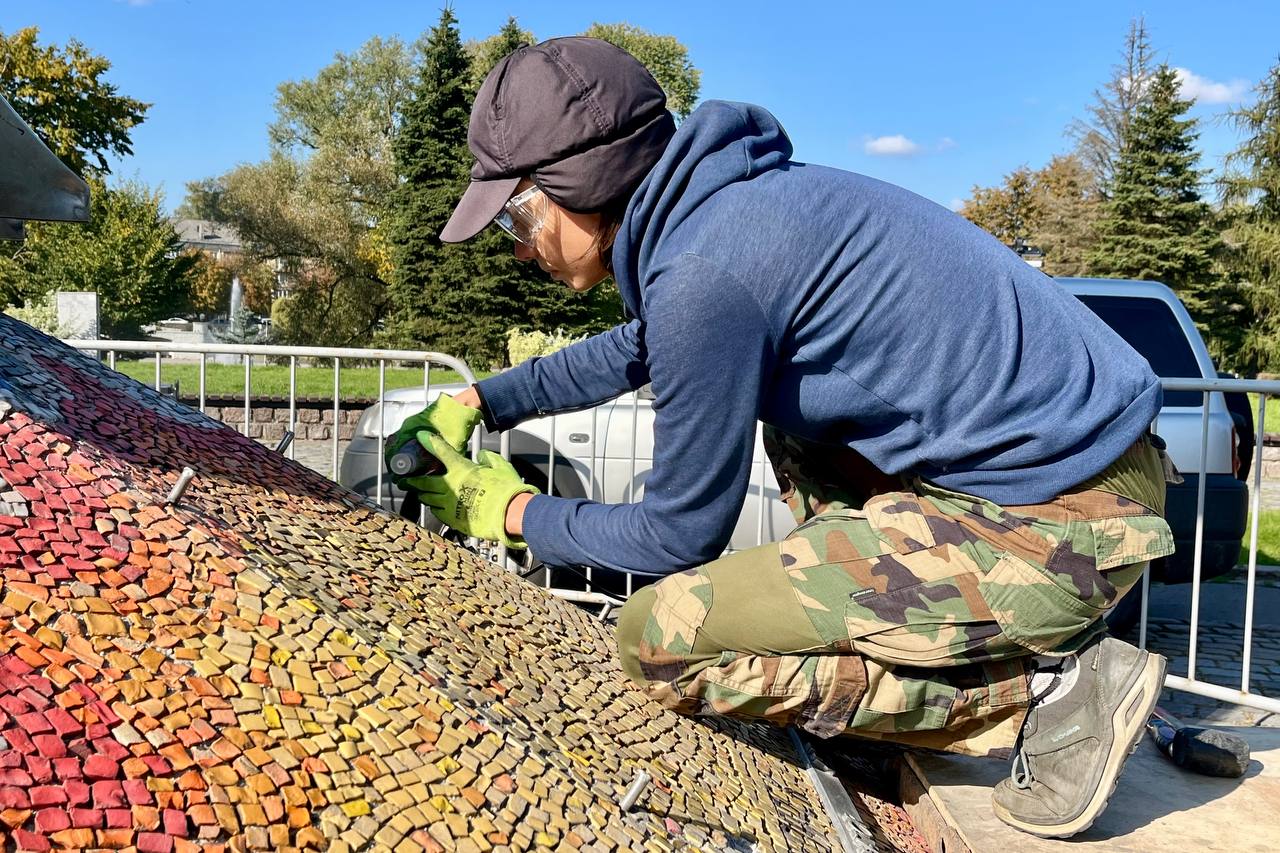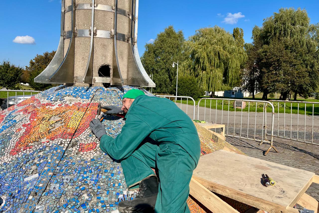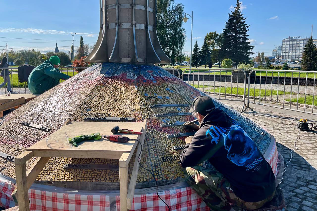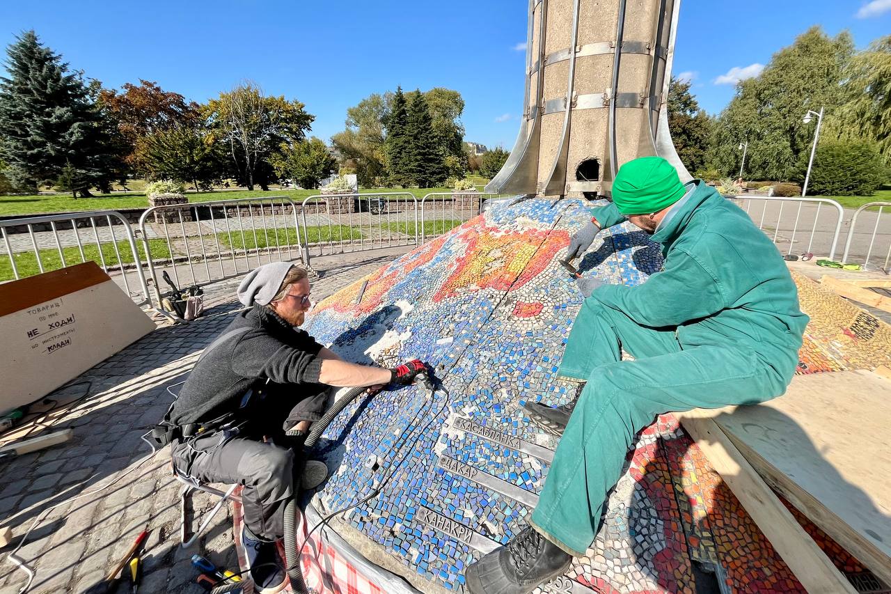 Часы, которые венчают вершину памятника, ремонтирует Александр Кучеренко. Мастер привёл в порядок механизмы и циферблаты. Он также отольёт таблички с названиями городов для мозаичной карты и установит меридианы, которые ранее были утрачены. Работы планируют завершить в ноябре.