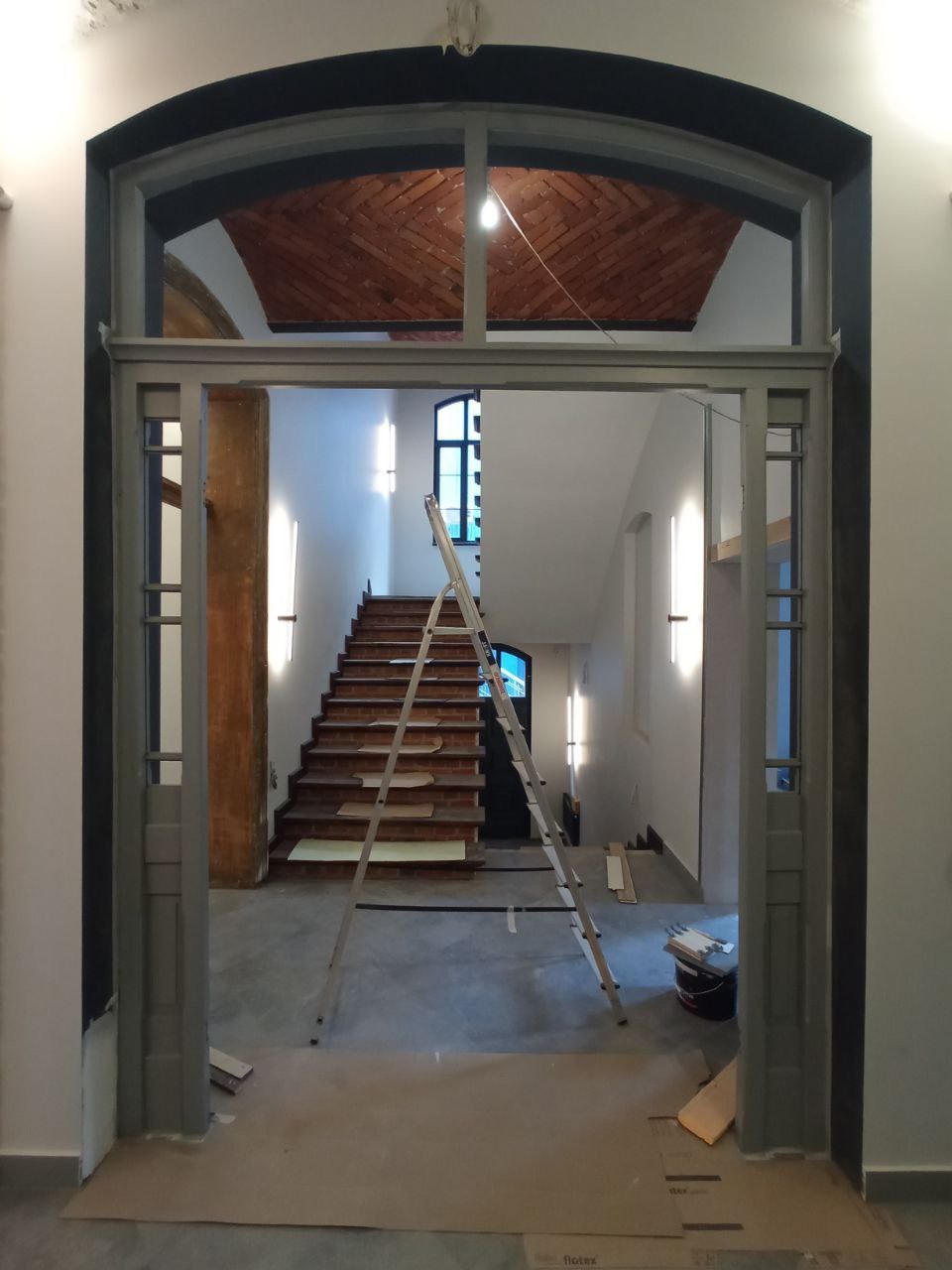 Специалисты приводят в порядок деревянную отделку дверных проёмов и сами полотна. «Полным ходом идёт восстановление исторической „столярки“», — отметили в публикации.