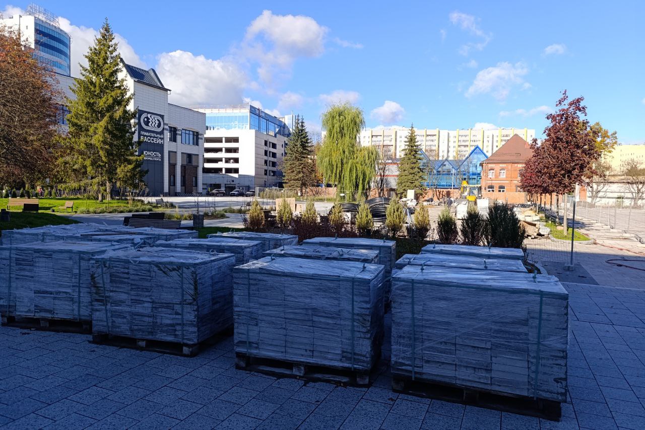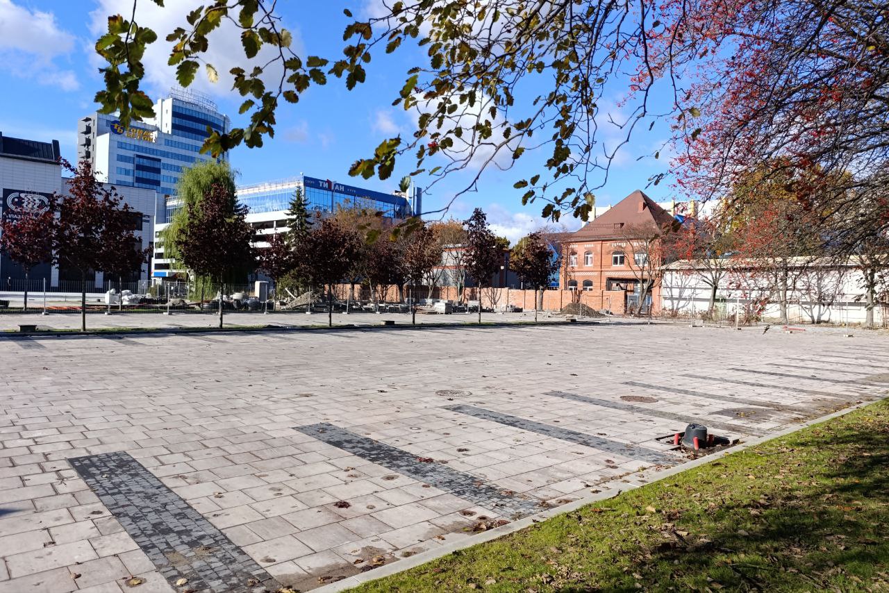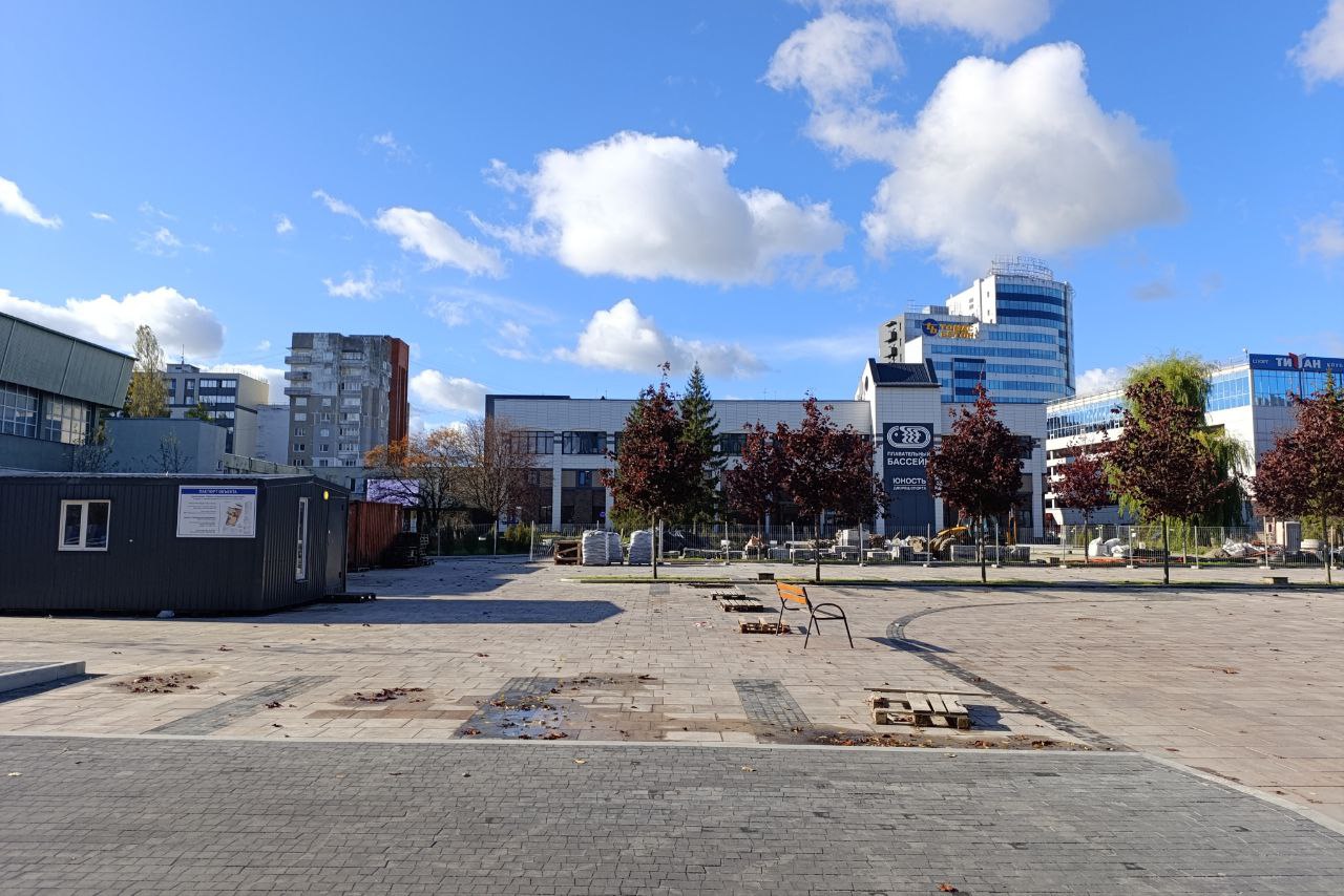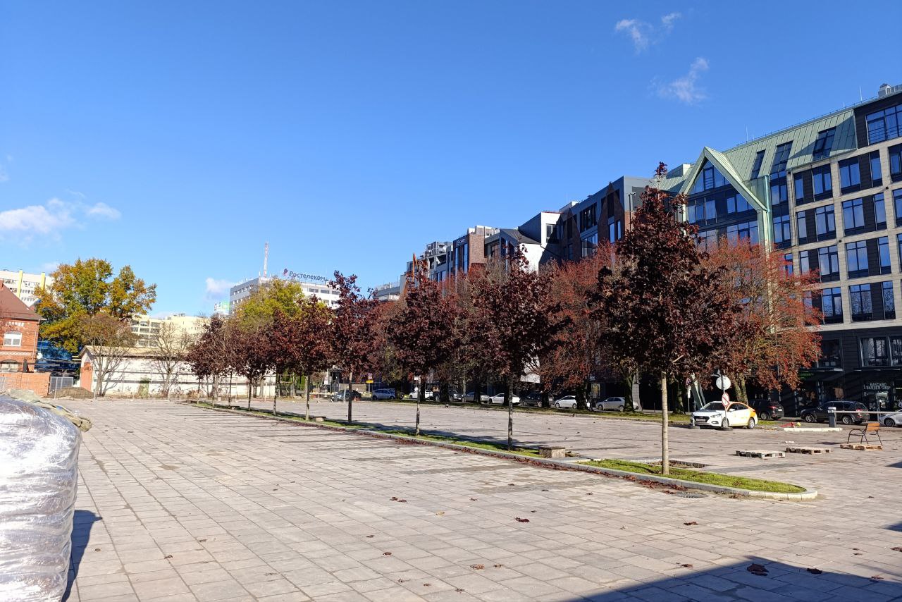 Как передаёт корреспондент Калининград.Ru, рабочие уложили плитку на всей территории парковки. Подрядчику осталось замостить только несколько участков, где располагаются коммуникации.