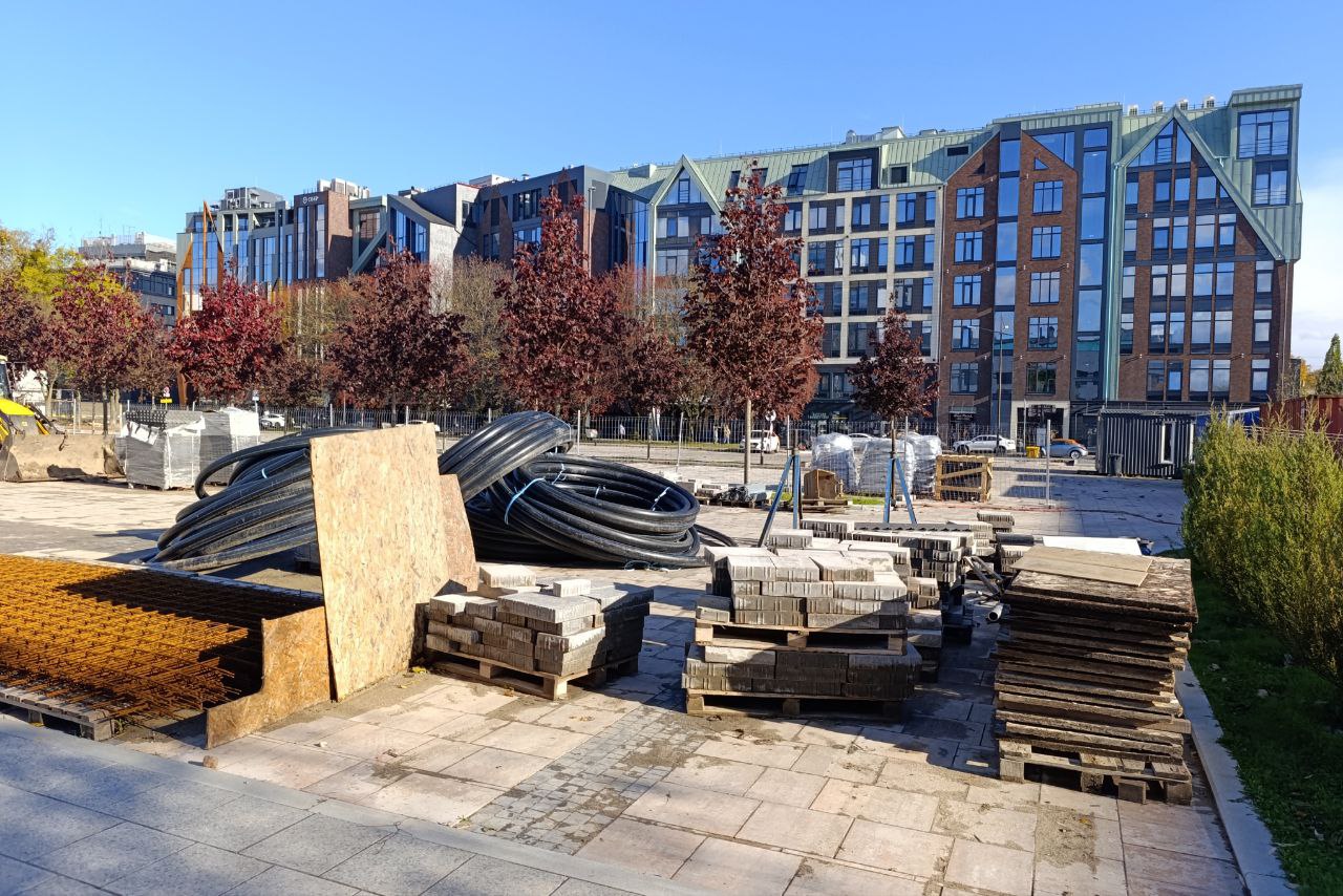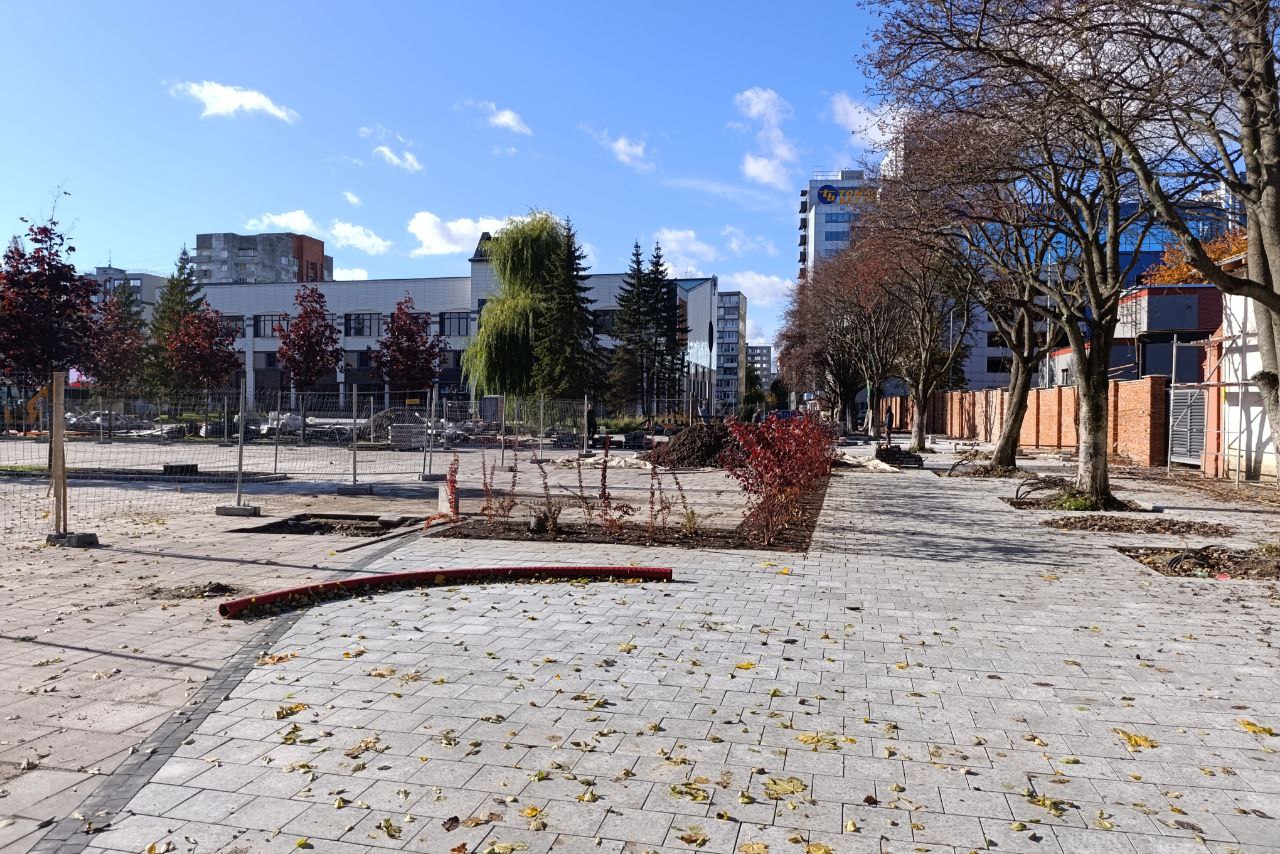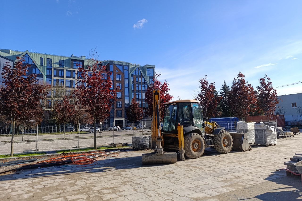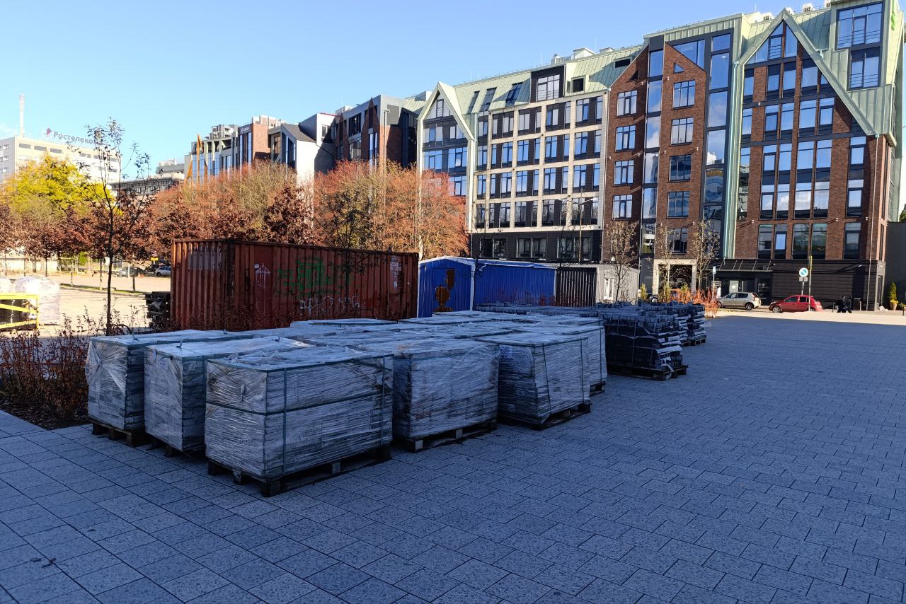 Как передаёт корреспондент Калининград.Ru, рабочие уложили плитку на всей территории парковки. Подрядчику осталось замостить только несколько участков, где располагаются коммуникации.