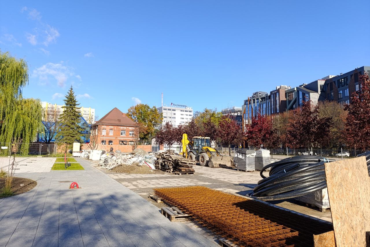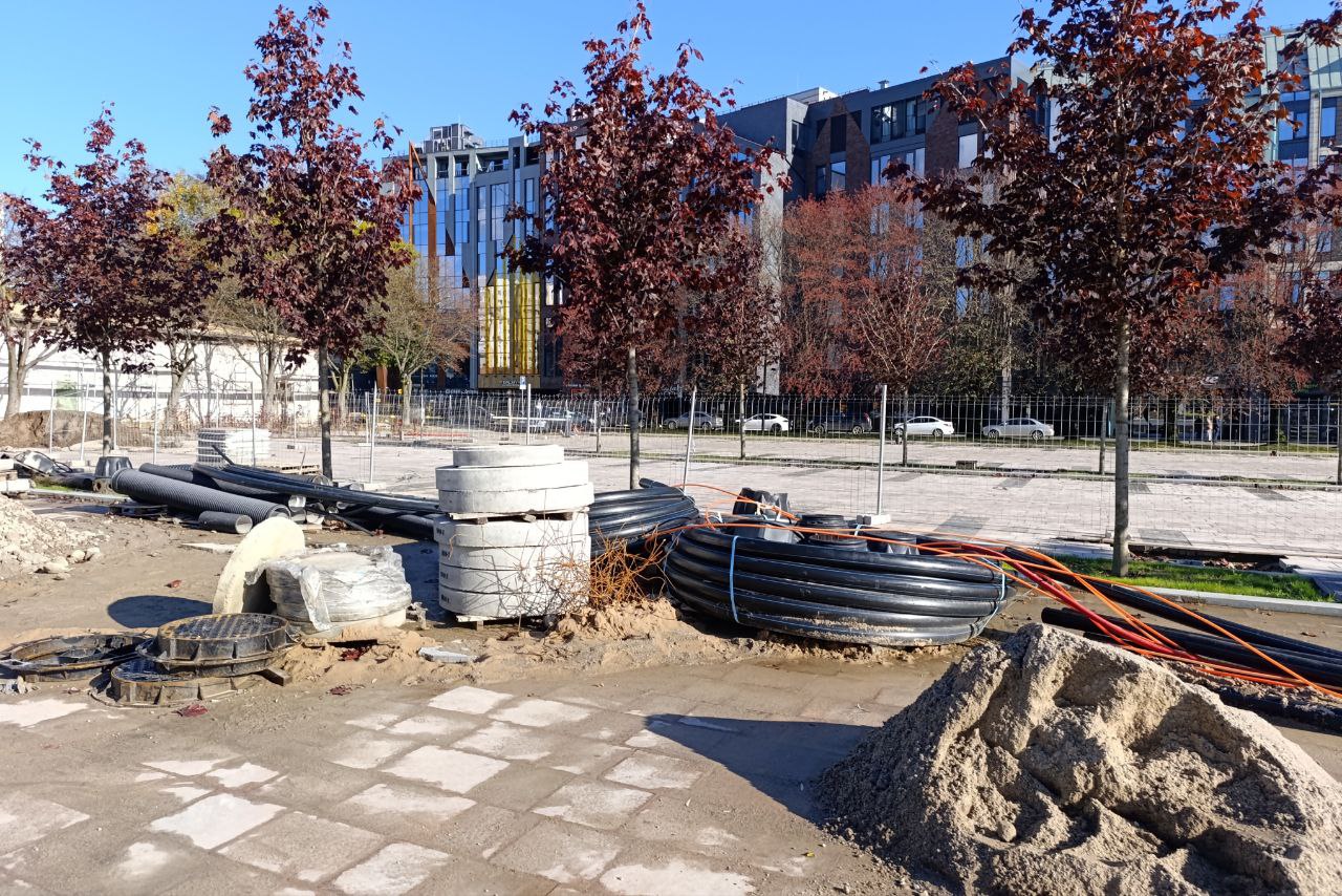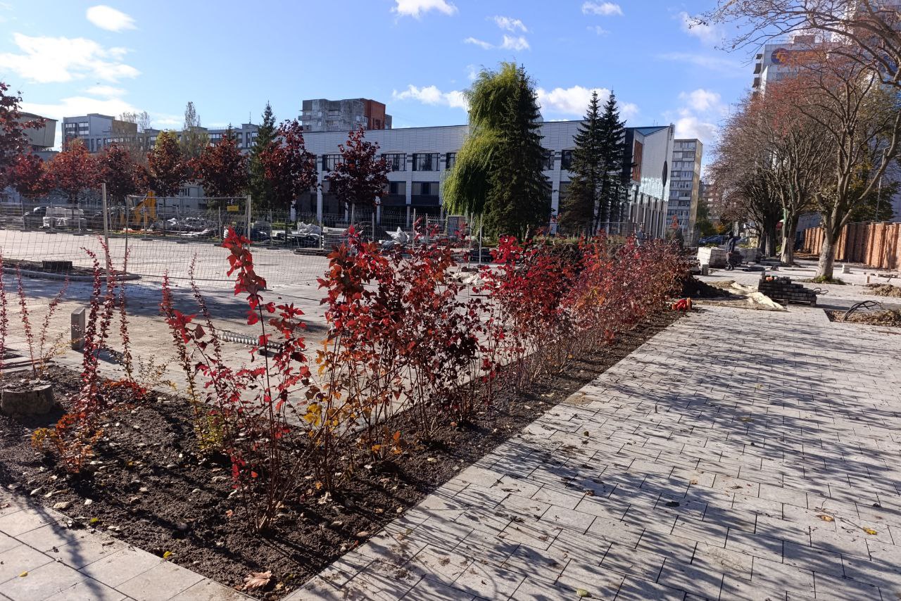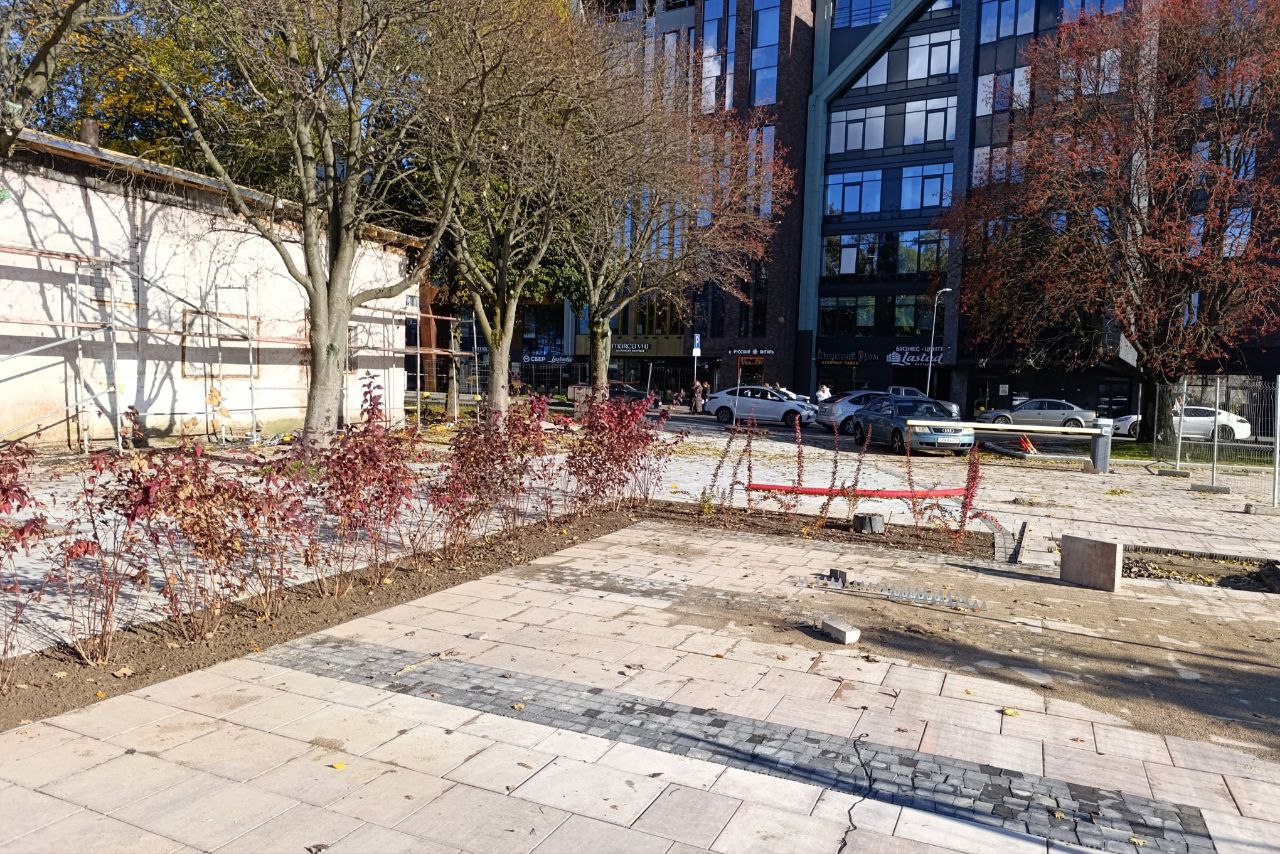 Как передаёт корреспондент Калининград.Ru, рабочие уложили плитку на всей территории парковки. Подрядчику осталось замостить только несколько участков, где располагаются коммуникации.
