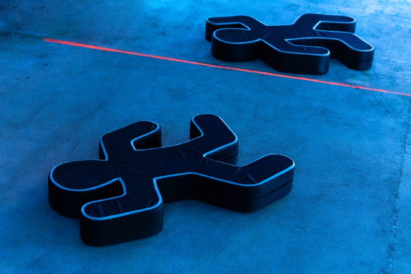 Полумрак, из которого красным вспыхивает тело огромного змея. В просторном помещении становится тесно от его изгибов и переплетений. В рисунке чешуи можно распознать силуэты яблок. Это — допотопный мир, в котором зло доминирует. А ещё отсылка к «Сотворению» — первой выставке команды Анненкирхе в Калининграде. Экспозиция завершалась красными яблоками, символизирующими грехопадение.