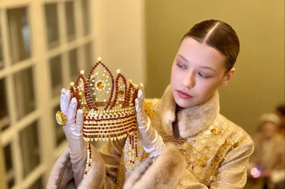 «Современная версия старинного русского головного убора собрана из 1145 янтарных деталей — круглых и гранённых бусин, а также кабашонов — камней, которые после обработки приобретают гладкую выпуклую поверхность. В кокошнике представлены основные природные оттенки солнечного камня — от редкого белого до более распространённых медового и коньячного», — говорится в сообщении.