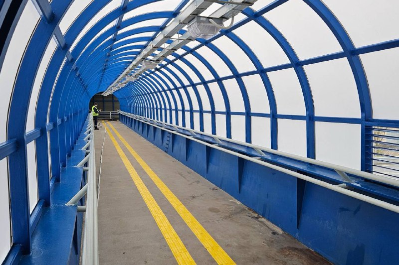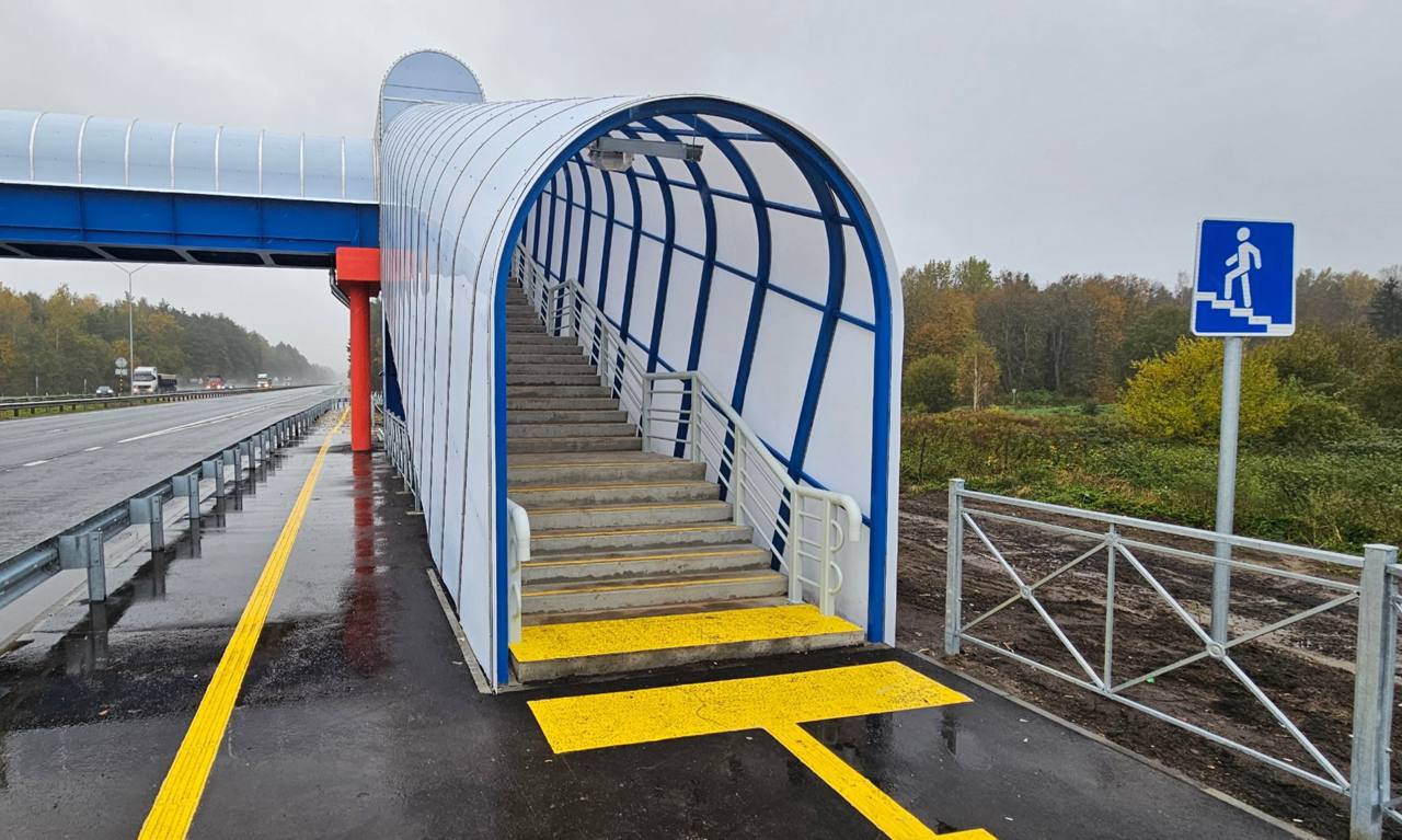 На участке установили светодиодное освещение и видеокамеры, а также обустроили два остановочных павильона с тротуарами. Для маломобильных групп населения предусмотрели два лифта.