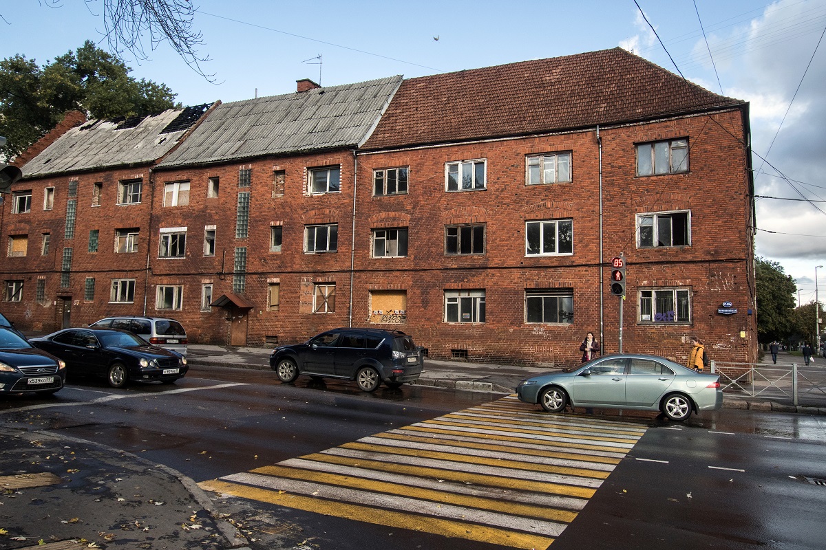 Комплекс из красного кирпича, известный как Дом пожарных, находится напротив Закхаймских ворот и магазина «1000 мелочей». Здание построили в Кёнигсберге в XVIII веке как муниципальное жильё для служащих. Оно входило в ансамбль оборонительных сооружений, но объектом культурного наследия не признано. В двухтысячные там располагалось общежитие «Колледжа сервиса и туризма», а часть помещений сдавали в аренду. Впоследствии строение пустовало.