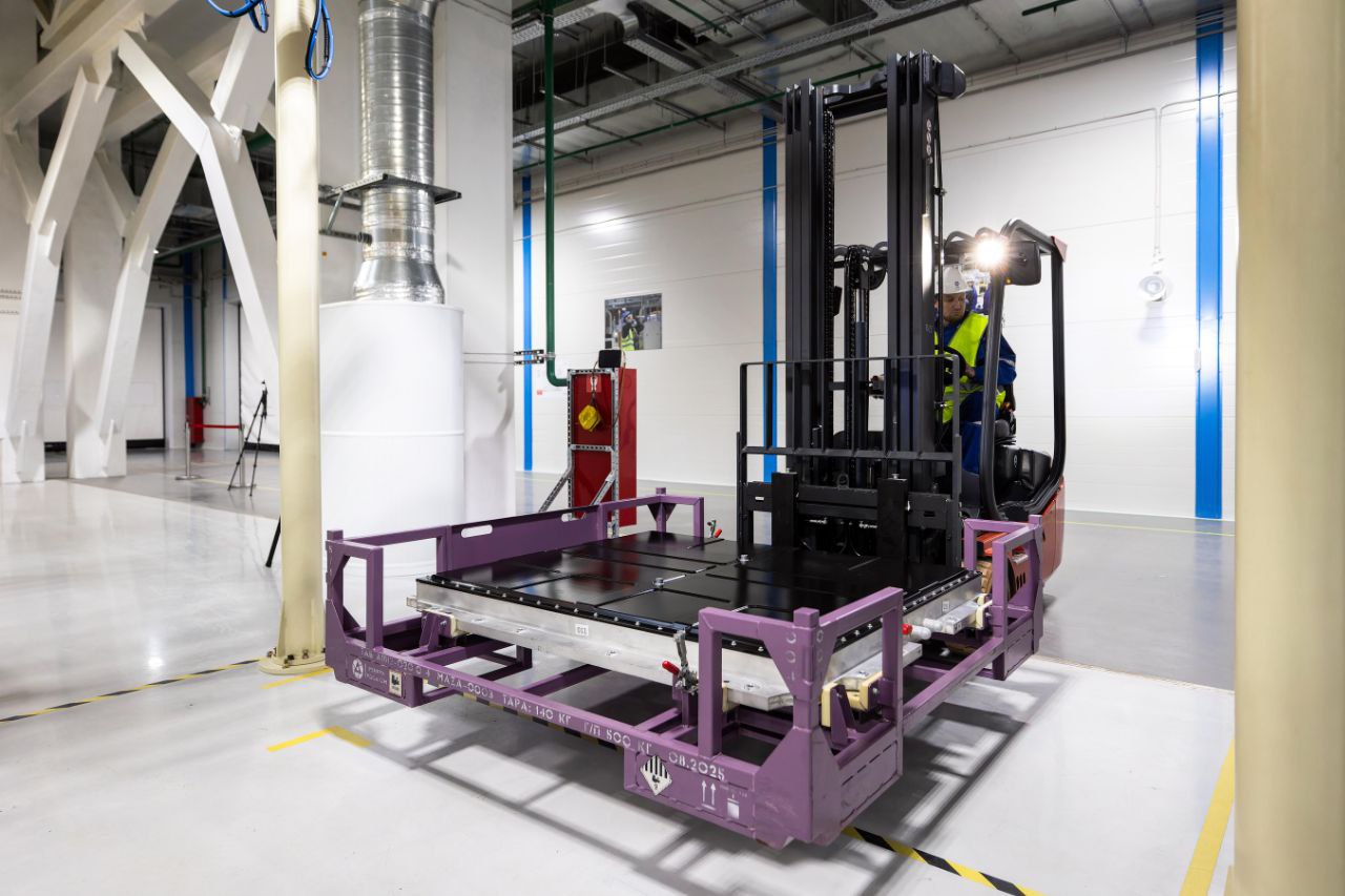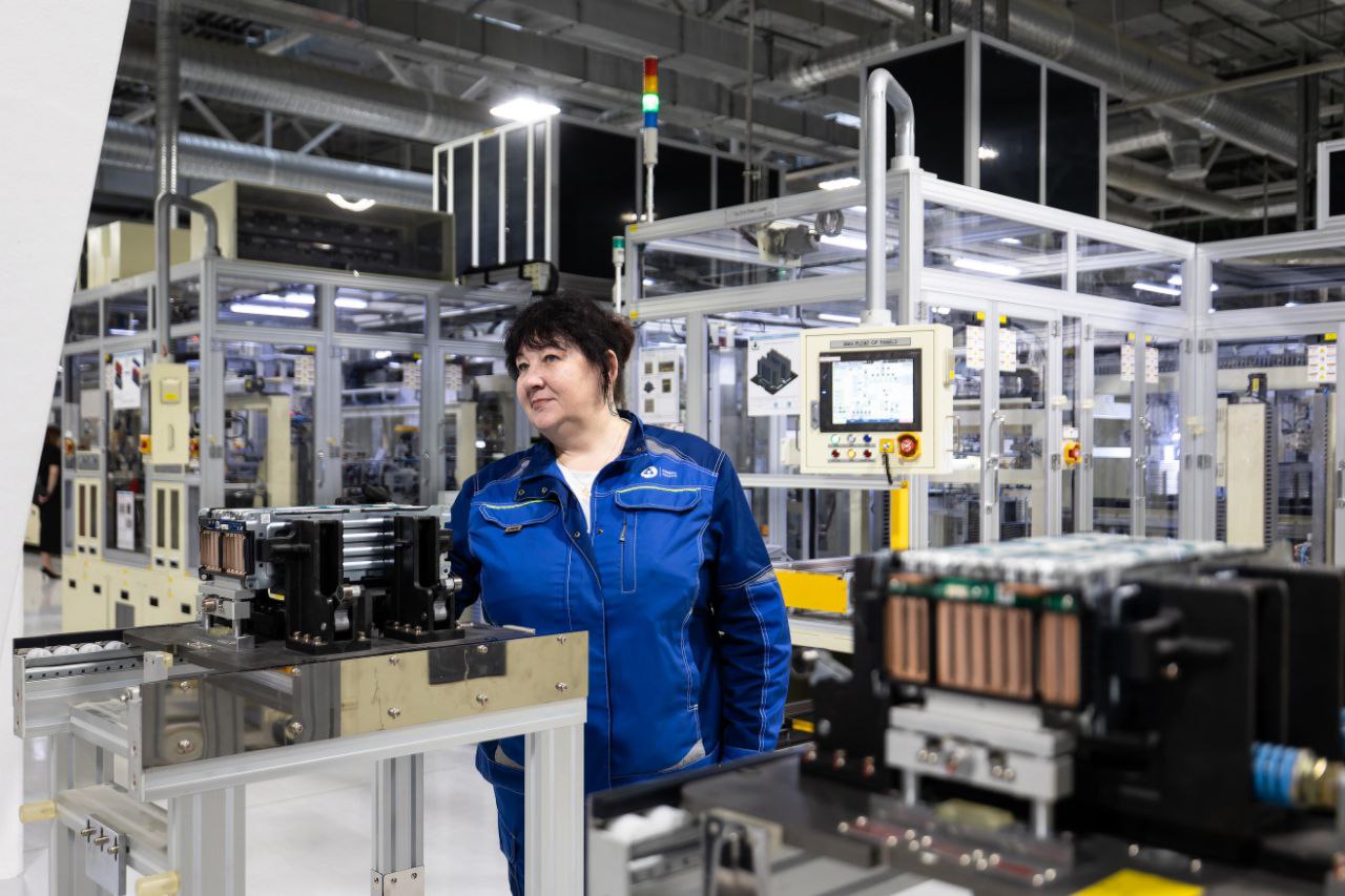 Гигафабрика стала единственным в стране промышленным производством литийионных аккумуляторов полного цикла — от первичной химии для аккумуляторной ячейки до создания финальных модулей и комплектных батарей. По словам Алексея Лихачёва, на проектную мощность комплекс выйдет летом 2026 года.