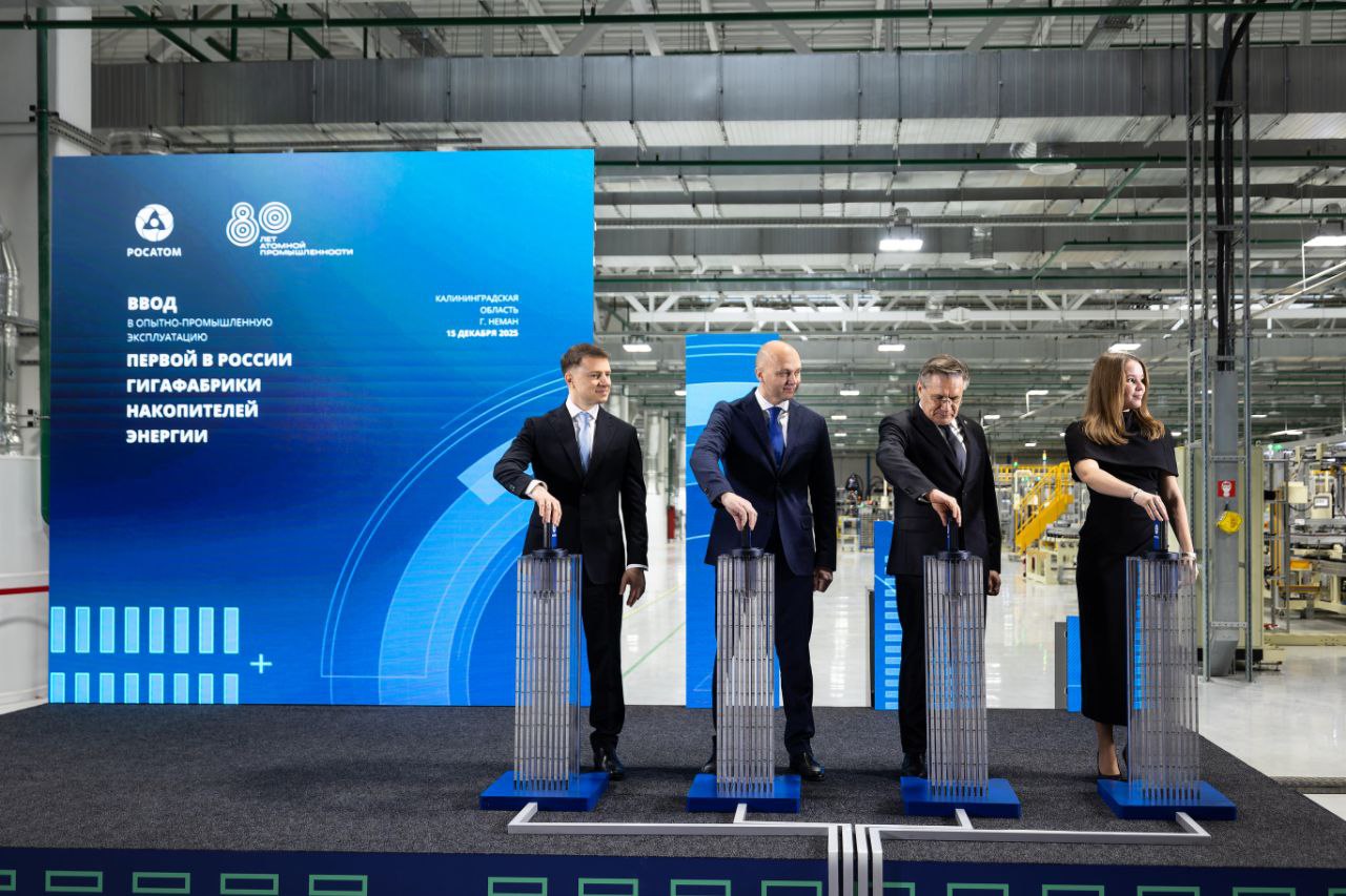 «Ну и, конечно, ещё одно наше служение — обеспечение страны зелёным, устойчивым экологическим электричеством — тоже получит дополнительную грань, дополнительную степень развития. Мы можем балансировать разные источники электроэнергии мощными промышленными накопителями, также подготовленными здесь, на калининградской фабрике, повышая эффективность использования генерирующих мощностей. Скажем, ветро-, солнечной генерации, везде, где есть пики генерации. Всё это может быть выровнено и оптимизировано за счёт создания мощных промышленных накопителей электроэнергии. Мы будем тиражировать эту технологию, тиражировать её в России. Уже есть интерес, в том числе юридически значимые договорённости с нашими зарубежными партнёрами», — отметил Алексей Лихачёв.