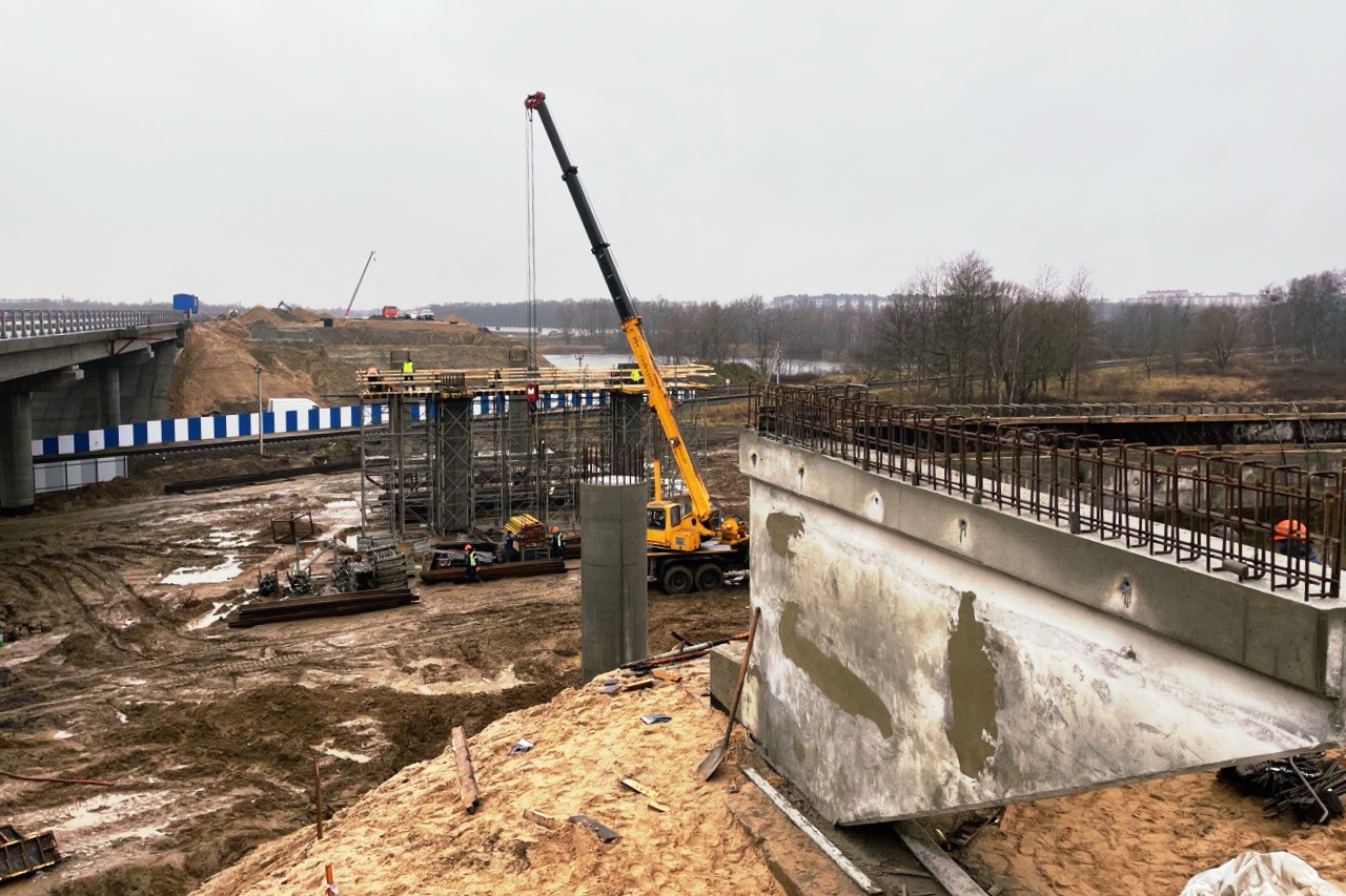 В июне текущего года на этом участке досрочно открыли техническое движение транспорта на правом направлении основного хода, где уже построены новые пролёты путепроводов и моста. К настоящему моменту на левом направлении старые путепроводы и мост разобраны, заканчивается возведение опор для новых сооружений. В начале декабря приступили к монтажу железобетонных балок и устройству пролётных строений новых путепроводов и моста, — сказал замначальника строительного управления АО «ВАД» по Калининградской области Евгений Гичко.