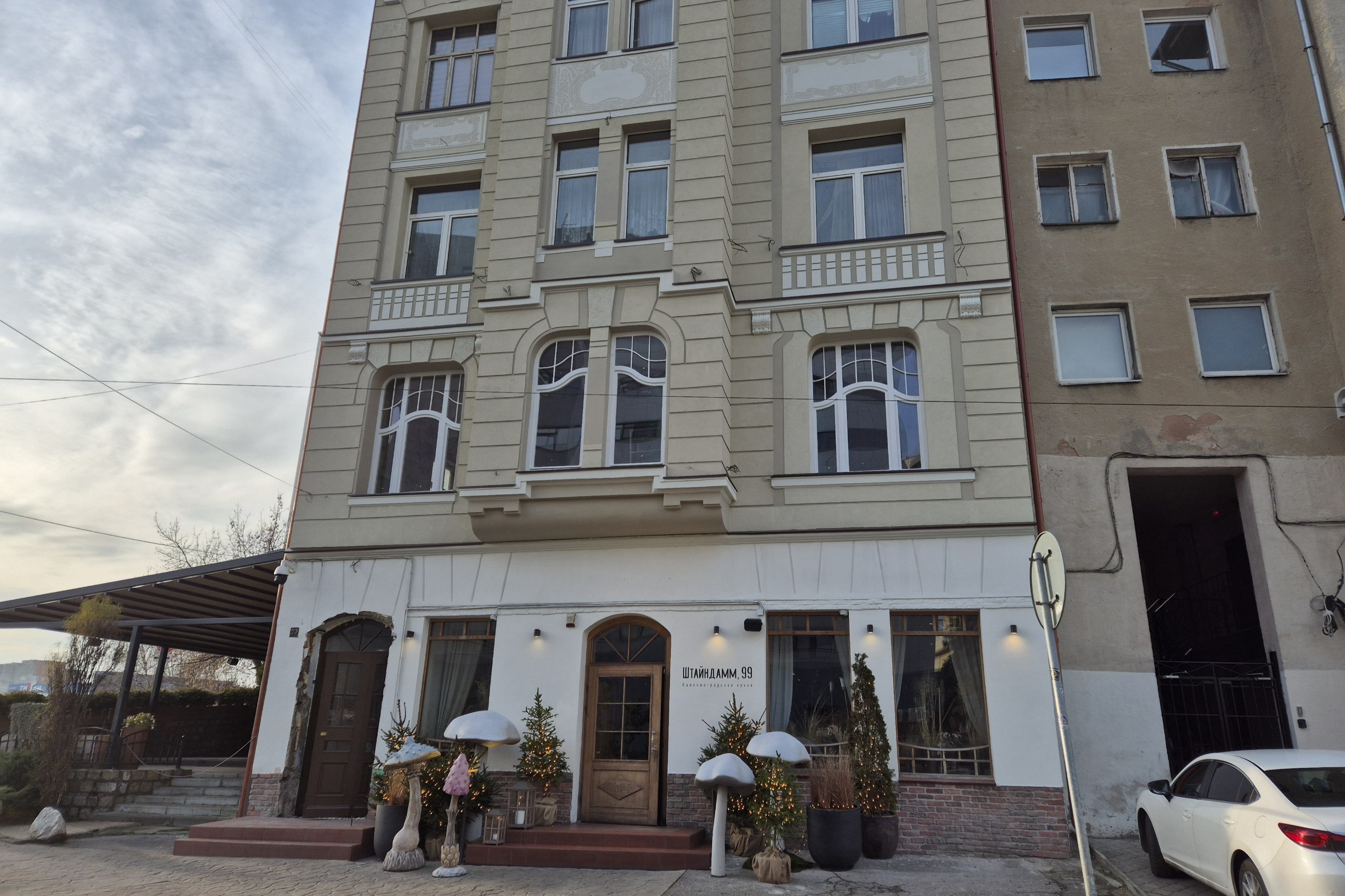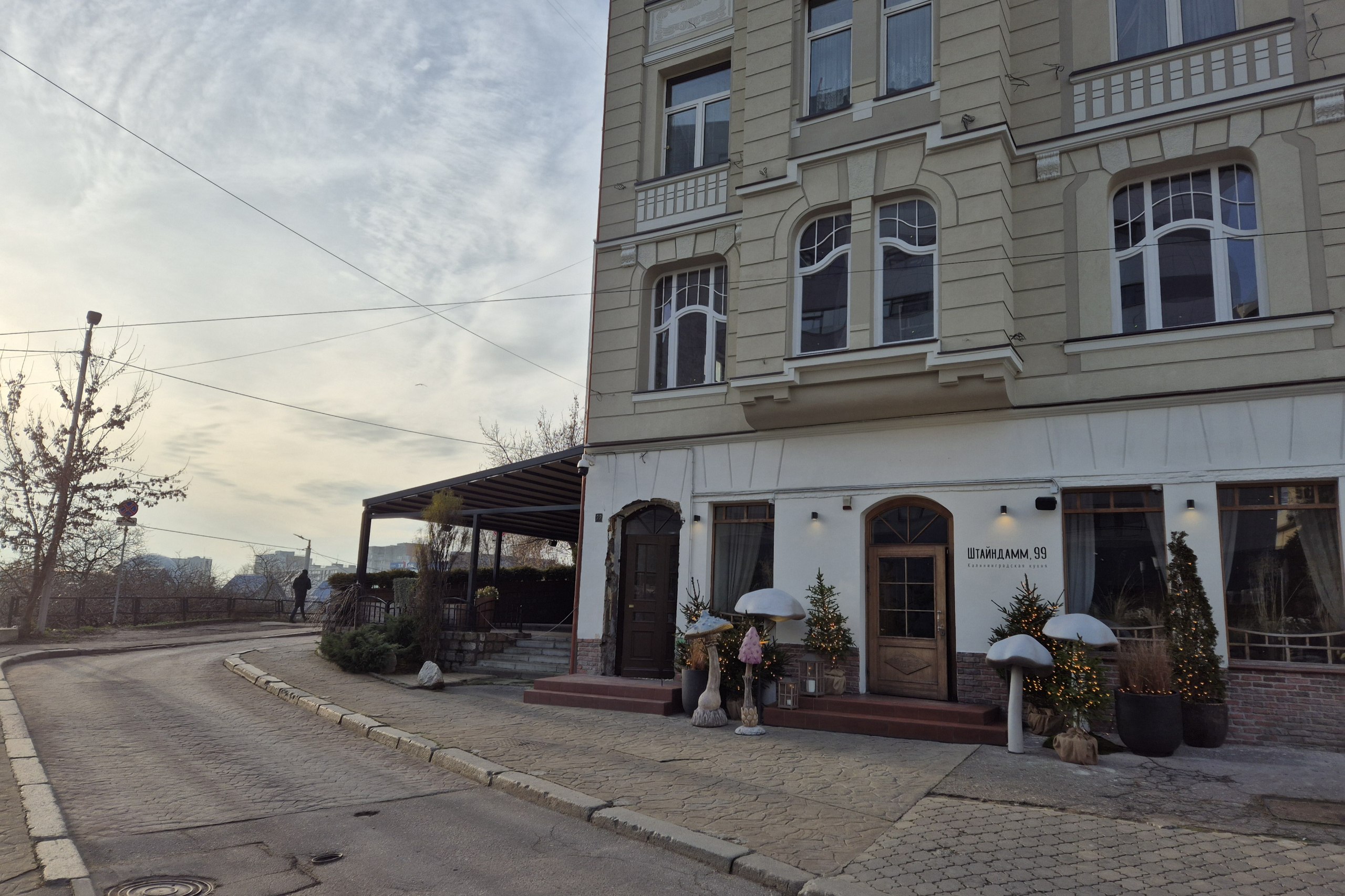Пятиэтажный дом построили в Кёнигсберге на одной из главных улиц вблизи Королевского замка. Тогда она называлась Штайндамм и была деловым центром города. Во время Второй мировой войны большинство строений разрушили или сильно повредили. Здание №22-24 на современной улице Житомирской считается «последним домом Штайндамма».