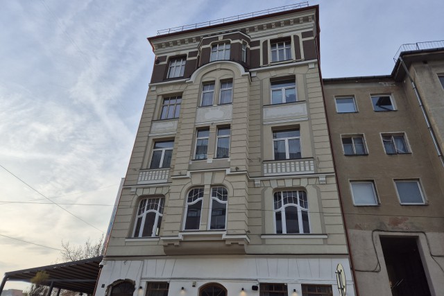 Как передаёт корреспондент Калининград.Ru, подрядчик убрал строительные леса. Дом покрасили в бежевые и коричневые цвета, на фасаде восстановили декоративные элементы и орнамент.