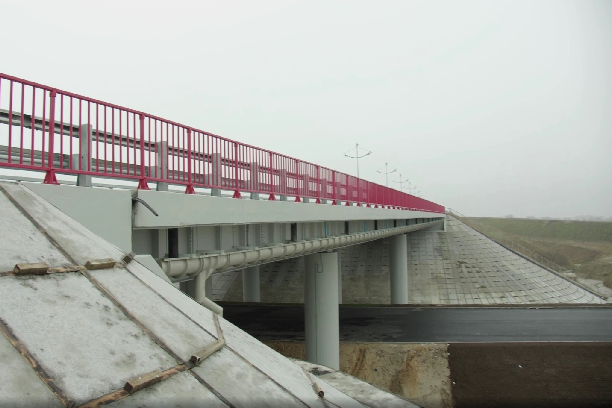 Специалисты выполнили устройство насыпей и слоёв дорожной одежды, завершили прокладку ливневой канализации, полностью уложили нижний, а на отдельных участках и верхний слои асфальта. Там закончили строительство пяти путепроводов и моста.