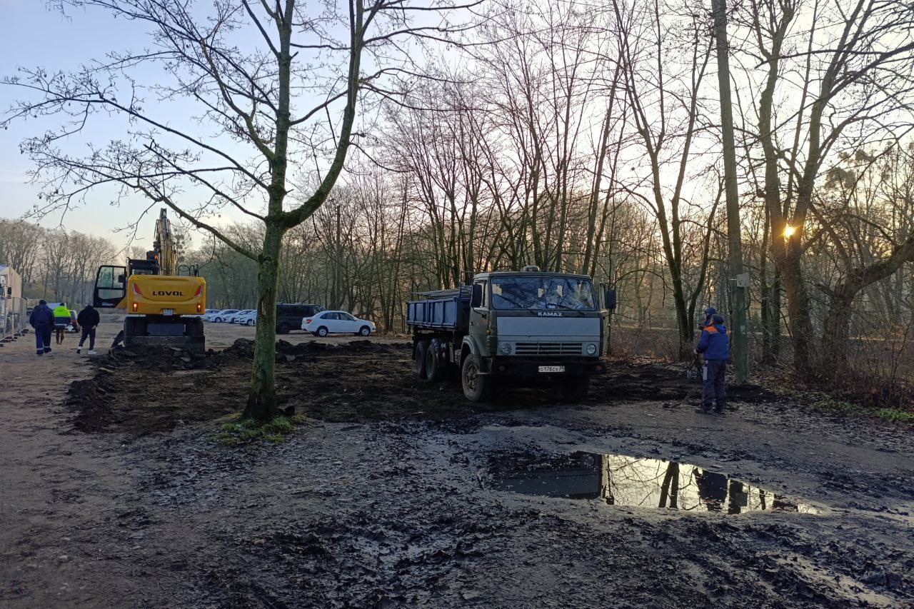 В Калининграде приступили к обустройству парковки в Южном парке. Строительная техника появилась на объекте несколько дней назад.