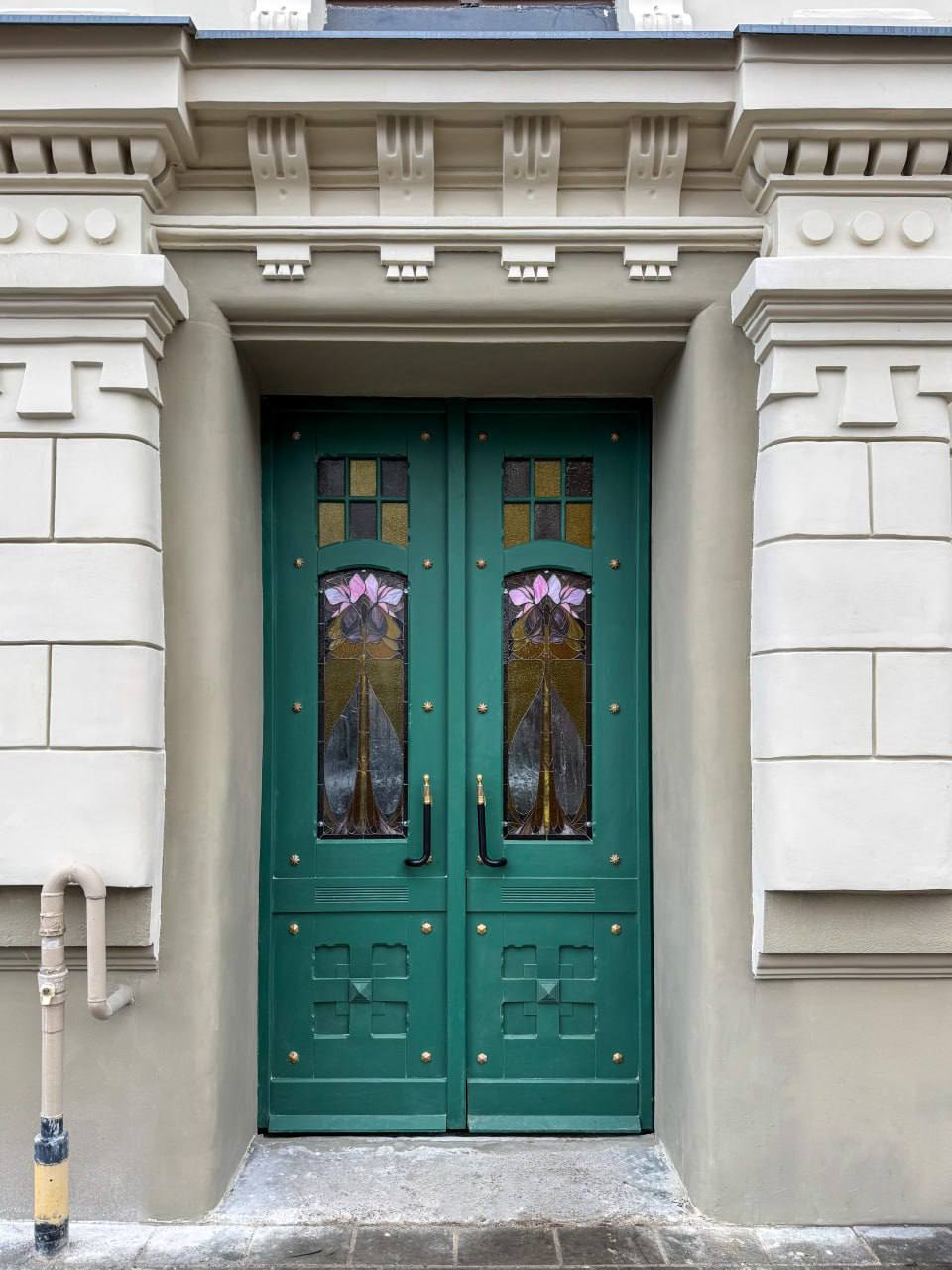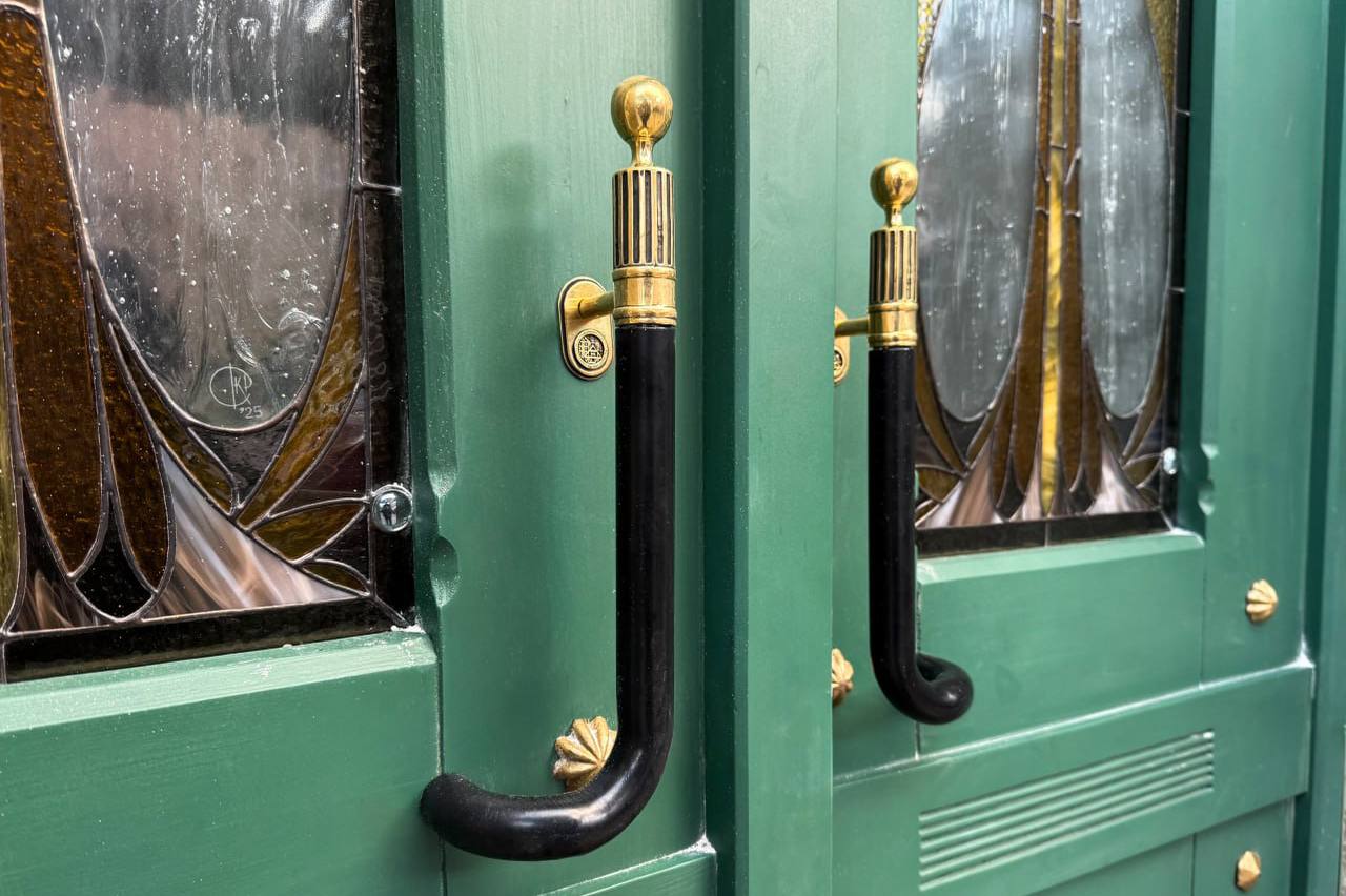 Ручки установили в двери дома на улице Комсомольской, 9. Конструкции изготовили по историческим референсам.