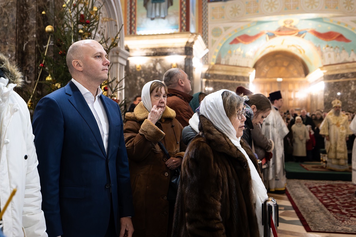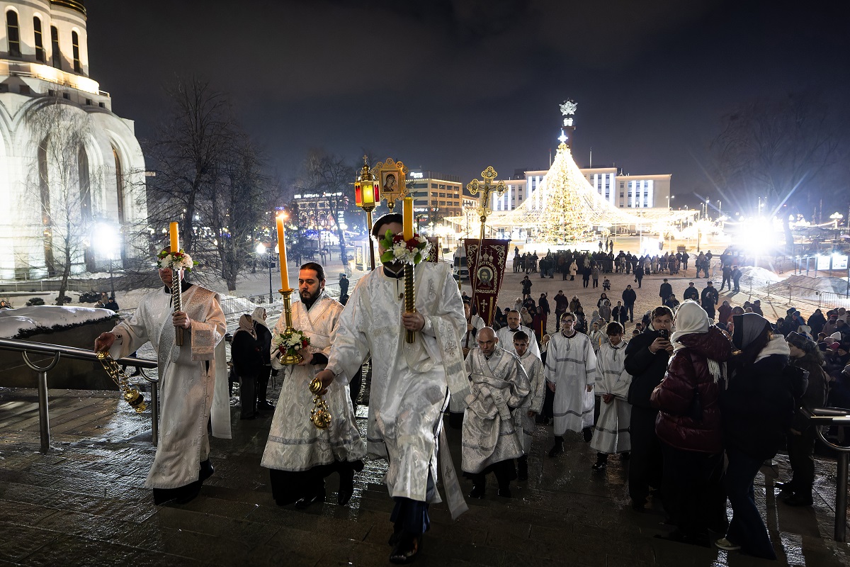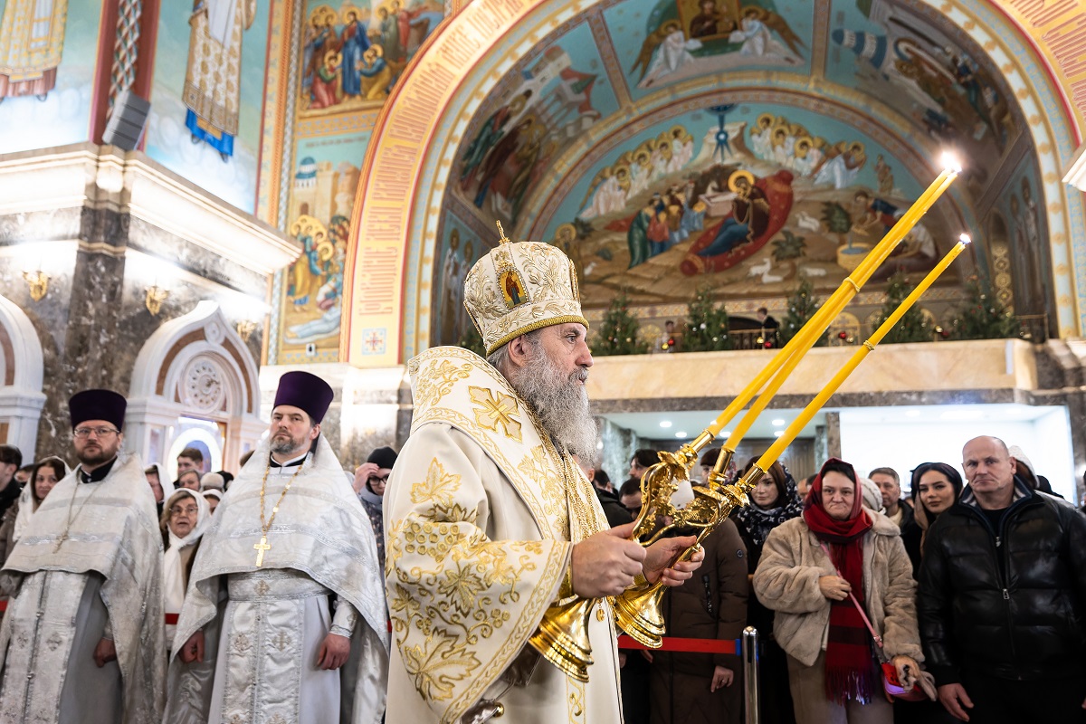 Божественную литургию возглавил митрополит Балтийский и Светлогорский Серафим. Он поздравил паству с Рождеством и наступившим Новым годом.