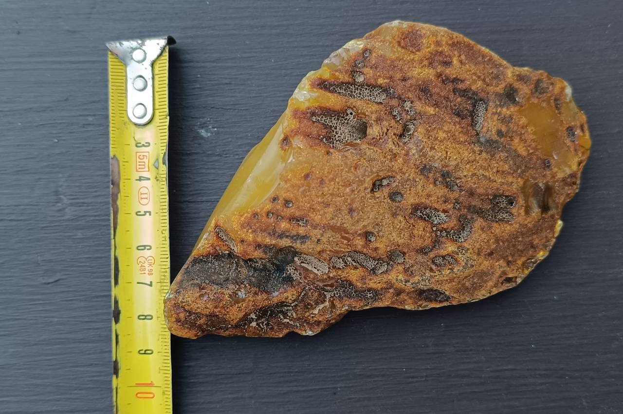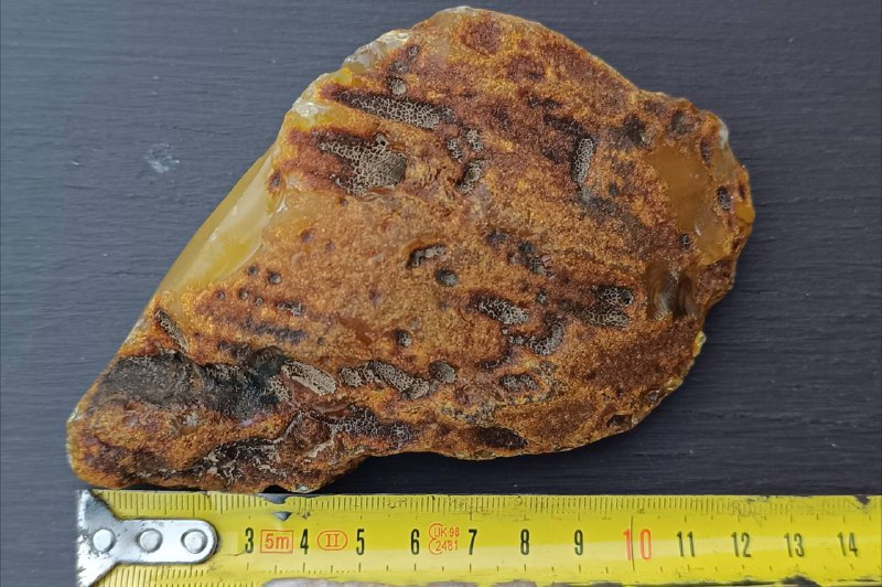 Камень обнаружили на Балтийской косе. Размеры янтаря — около 12,5 сантиметров в длину и 8,5 сантиметров в ширину.
