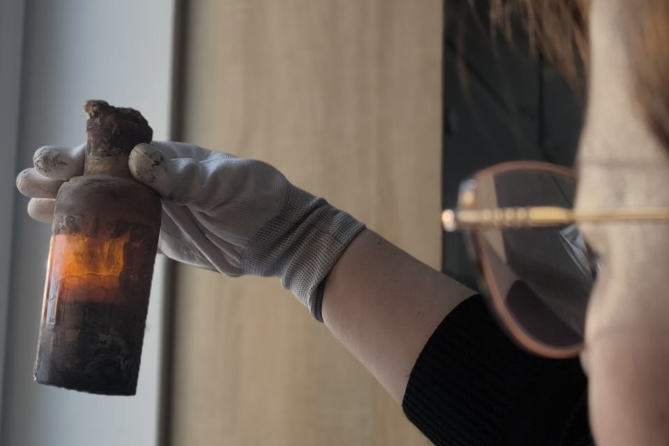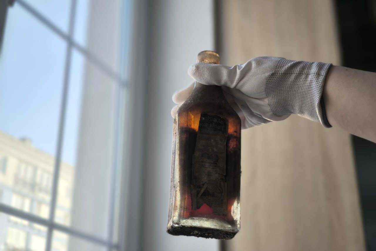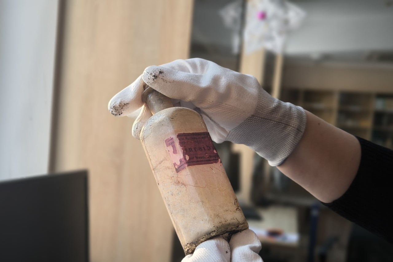 Внутри бутылок сохранилось содержимое. На их этикетках считывается часть текста. Работники музея обещают поделиться разгадкой «капсулы времени».