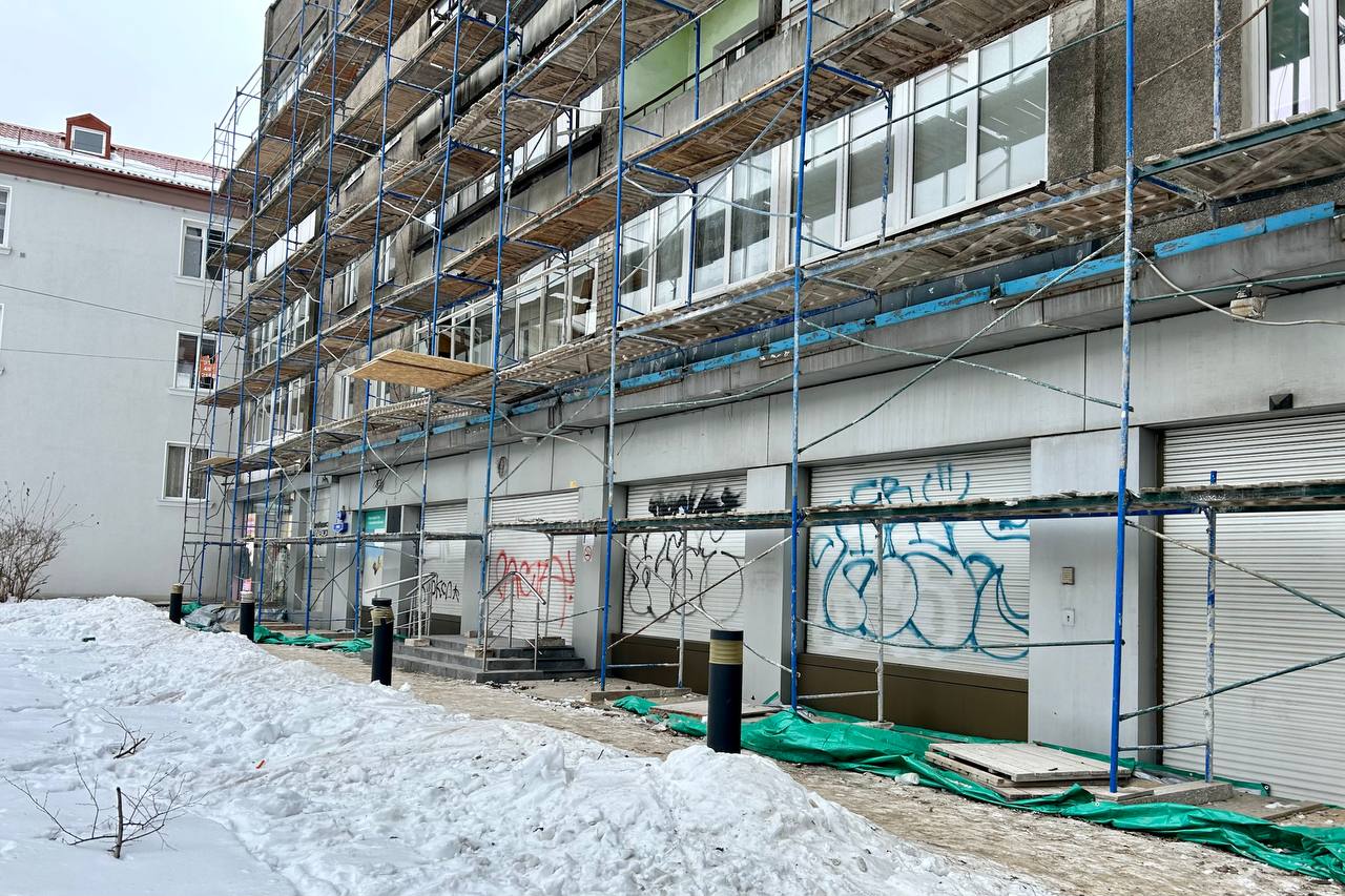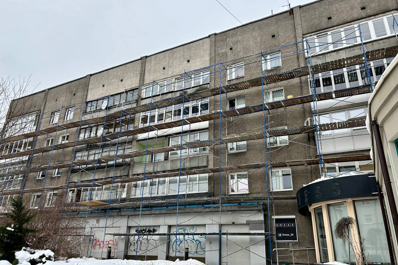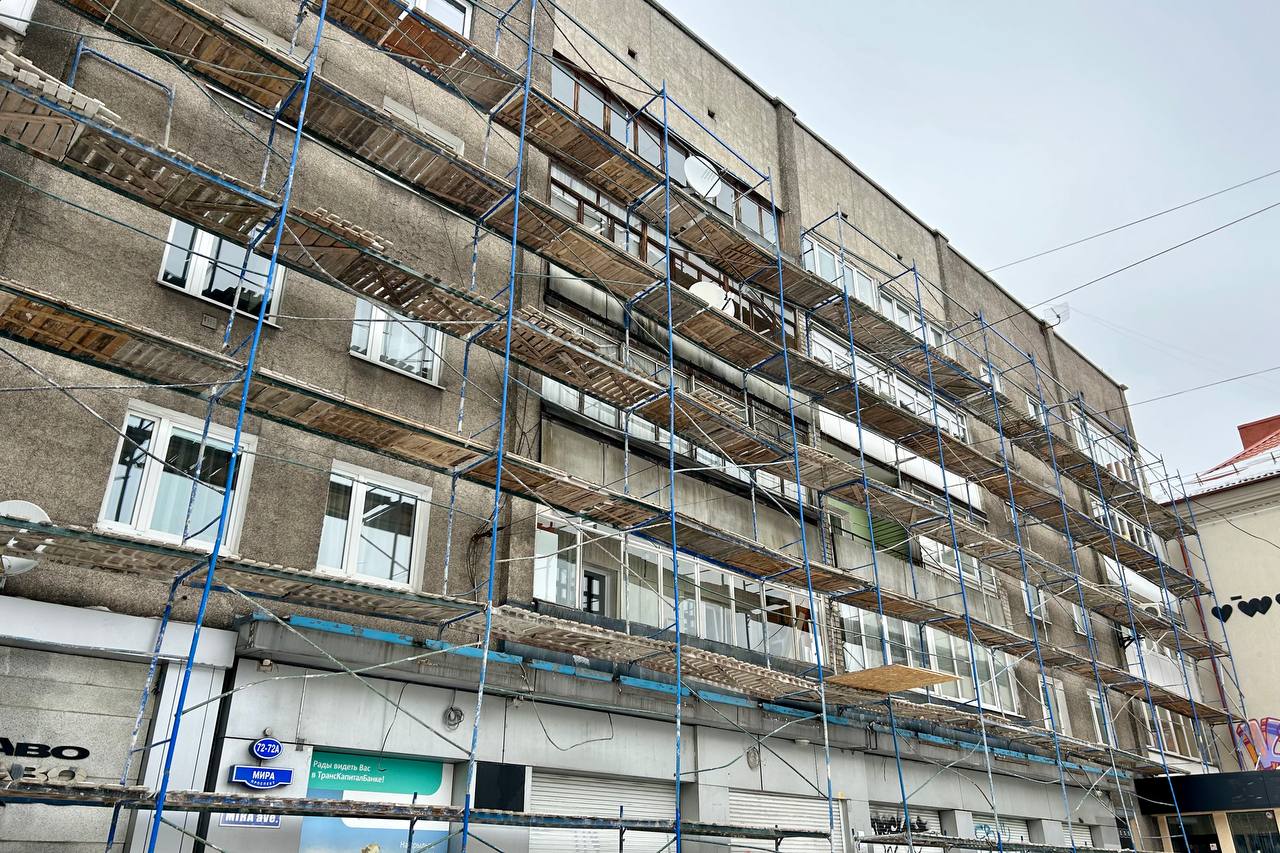 В Калининграде приступают ко второму этапу ремонта советской пятиэтажки на проспекте Мира. Специалисты приведут в порядок главный фасад дома №72-72А.