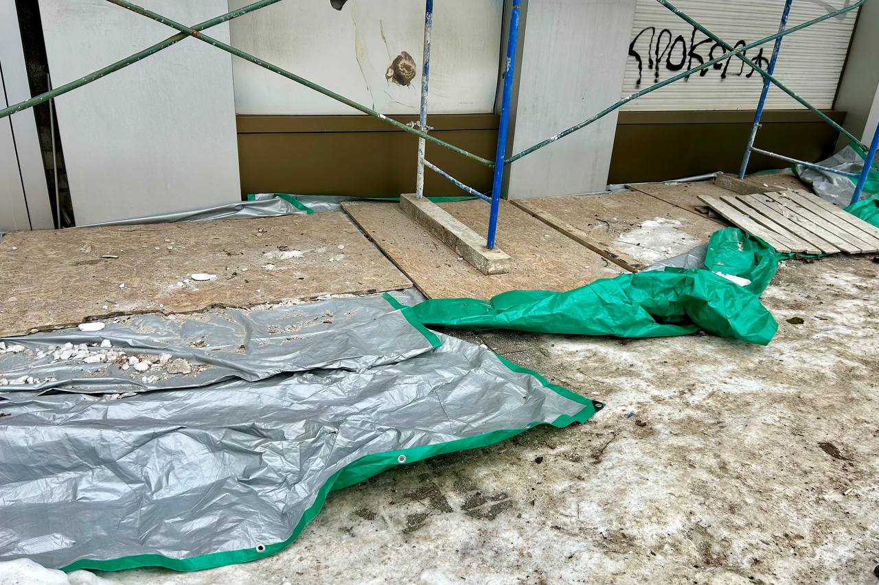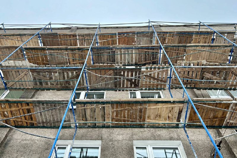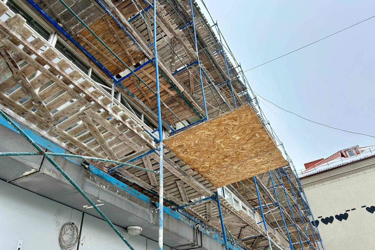 Как передаёт корреспондент Калининград.Ru, на здании установили леса. Специалисты готовятся приступить к работам.