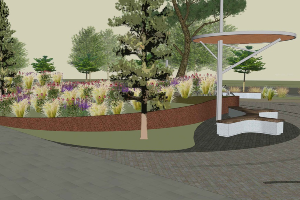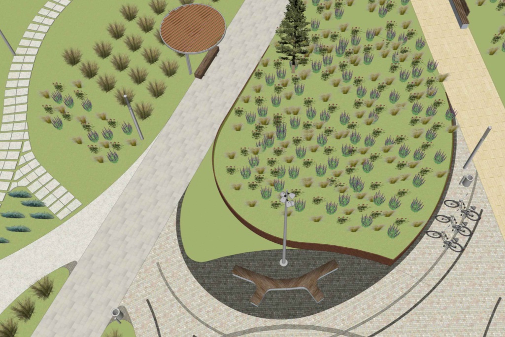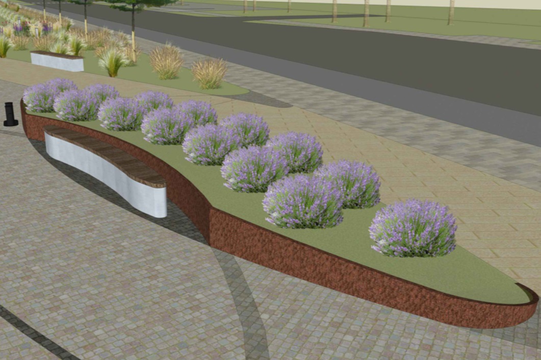 В сквере на улице Флотской высадят сакуры, дубы, берёзы, липы и различные многолетние растения. Зелёные «островки» укрепят подпорными стенками из кортеновской стали.