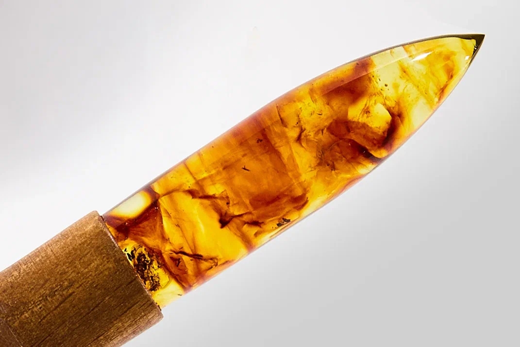 «Для производства янтарной пули специалисты применили технологию прессования. Метод позволяет под воздействием давления и температуры соединить отдельные фрагменты самоцвета в единую заготовку. Технологи комбината создали внутри заготовок для пули особый рисунок, комбинируя янтарь различных оттенков и меняя параметры прессования», — рассказали в пресс-службе предприятия.