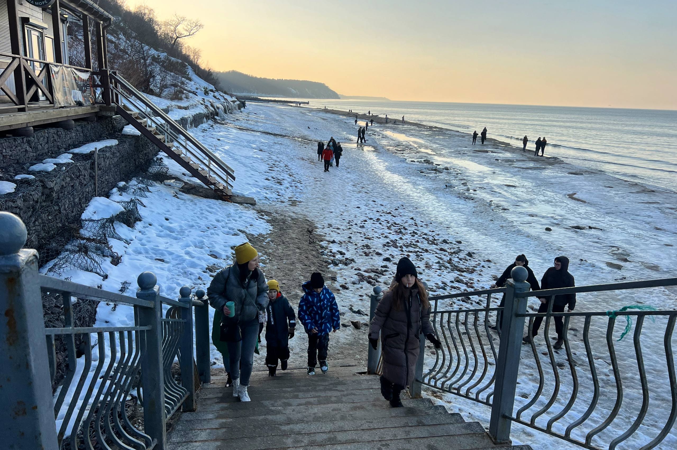 Жители массово отправились гулять на побережье. Люди набивались в электрички и стояли в пробках, чтобы добраться до курортных городов. Одним из популярных мест 28 февраля стал Светлогорск. Люди прогуливались по пляжу, ходили по тающему снегу и фотографировались на память.