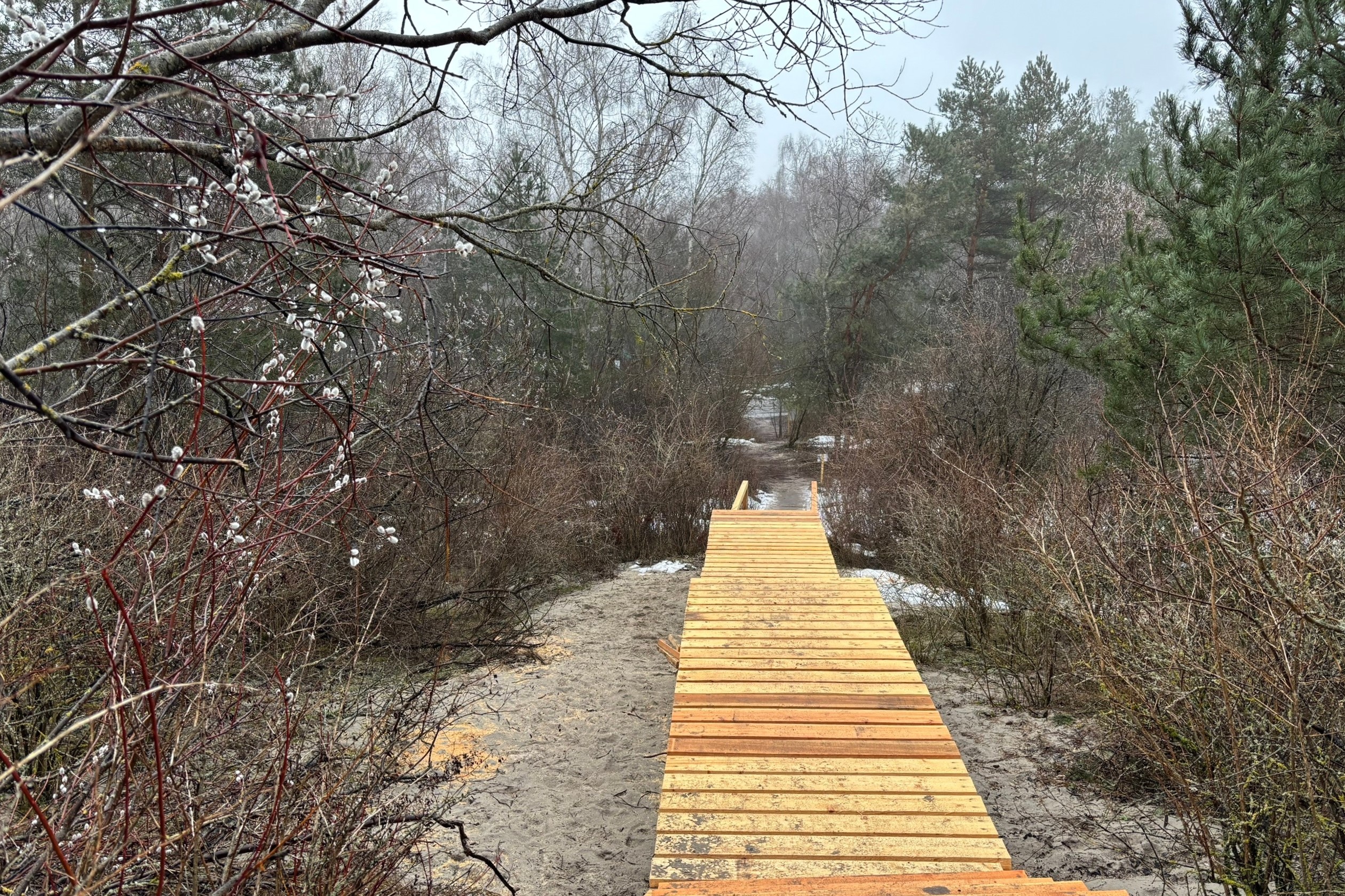 На 13-м километре Куршской косы начали обустраивать новый переход через авандюну. Информацию об этом опубликовали на странице национального парка «ВКонтакте».