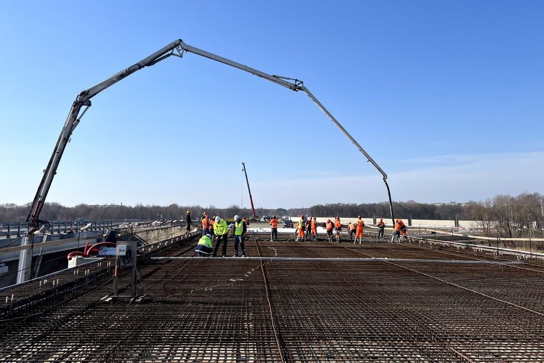 «К бетонированию приступили сразу при наступлении устойчивых плюсовых температур. Путепроводы на пересечении с проспектом Победы и с железнодорожными путями Калининград — Балтийск бетонируют на основном ходу (рабочее движение по правому ходу было открыто в июле 2025 года). На мосту через Питьевое озеро завершено армирование монолитной плиты пролётного строения и начато её поэтапное бетонирование», — рассказали в пресс-службе компании.
