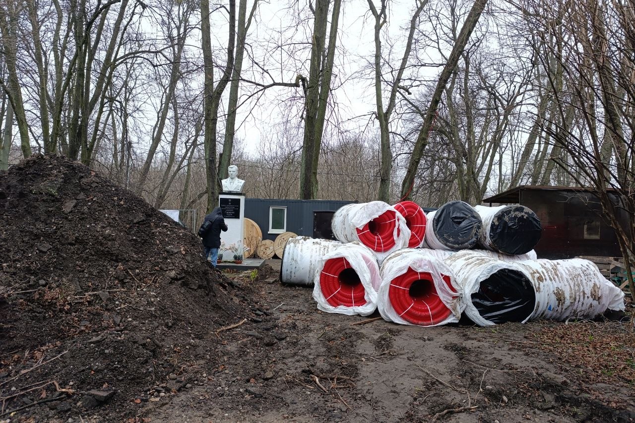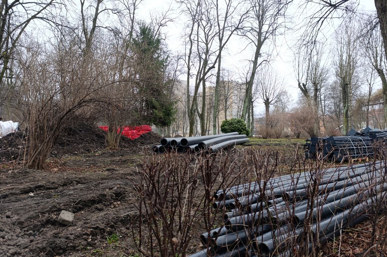 Парк имени Гагарина на улице Киевской в Калининграде закрыли на реконструкцию. Подрядчик приступил к работам на входной группе и на центральных дорожках.