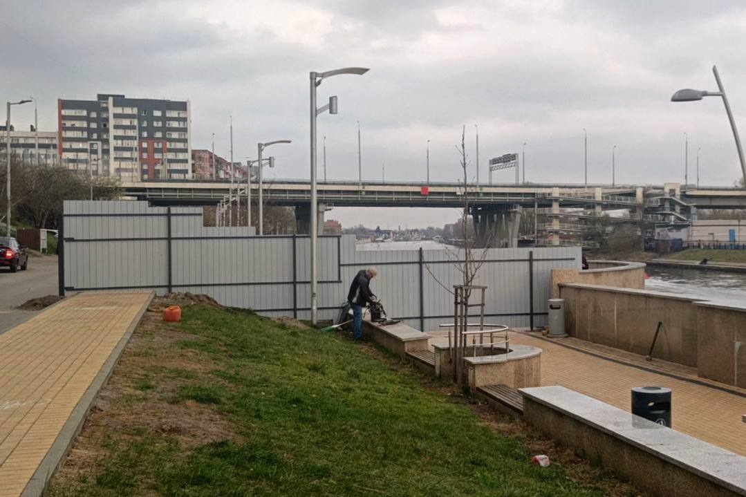 В Калининграде начали перекрывать набережную Трибуца рядом с «падающей» высоткой. Специалисты устанавливают строительный забор. Как передаёт корреспондент Калининград.Ru, сейчас ограждение начинается возле самой реки и доходит до автомобильного проезда.