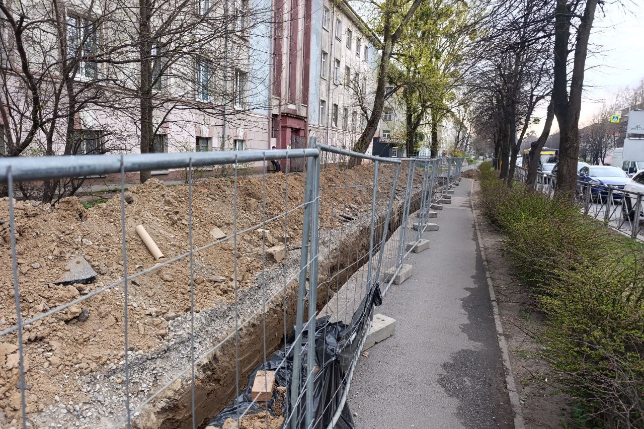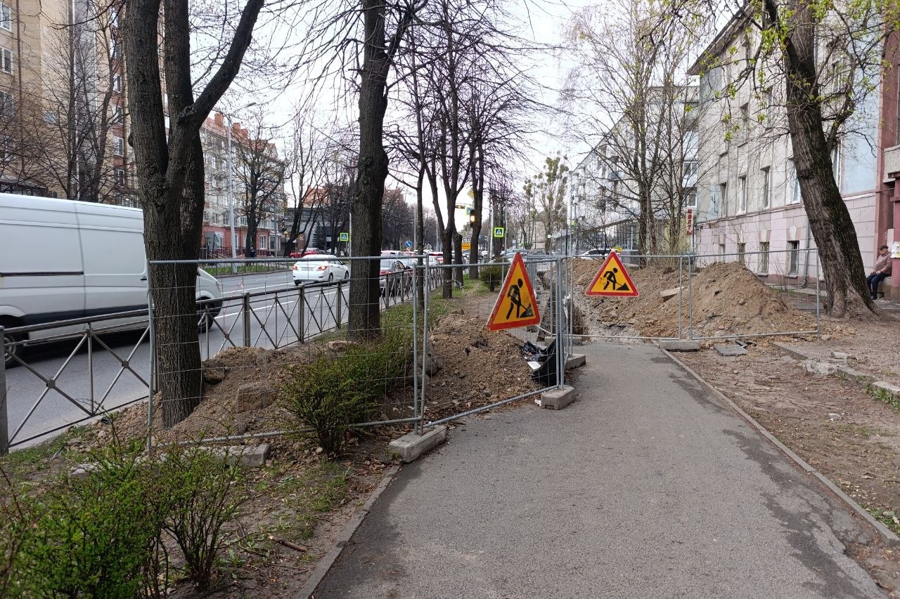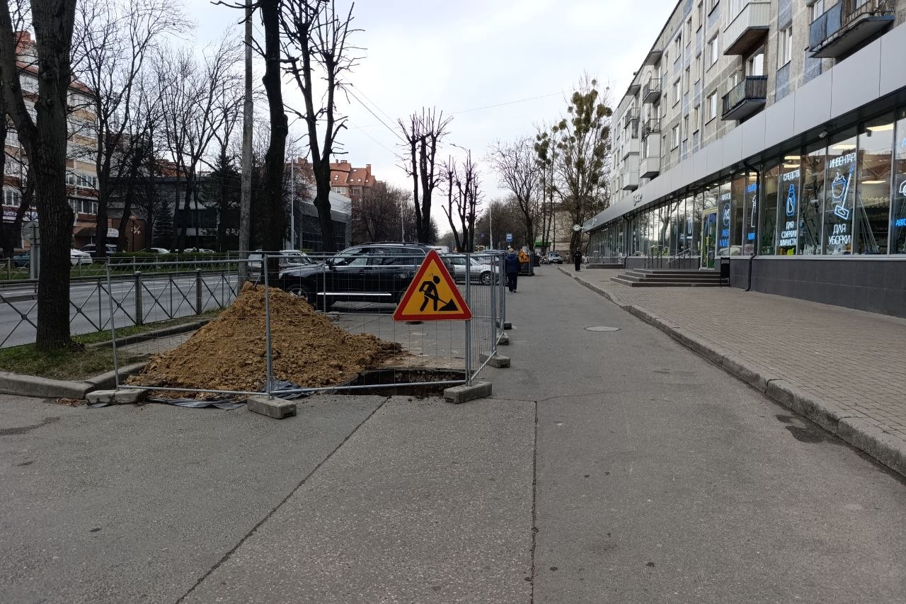 Подрядчик реконструирует перекрёсток улиц Невского и Дадаева в Калининграде. Рабочие начали переустройство сетей электроснабжения. Как передаёт корреспондент Калининград.Ru, на чётной стороне улицы Невского вырыли большую траншею на тротуаре.