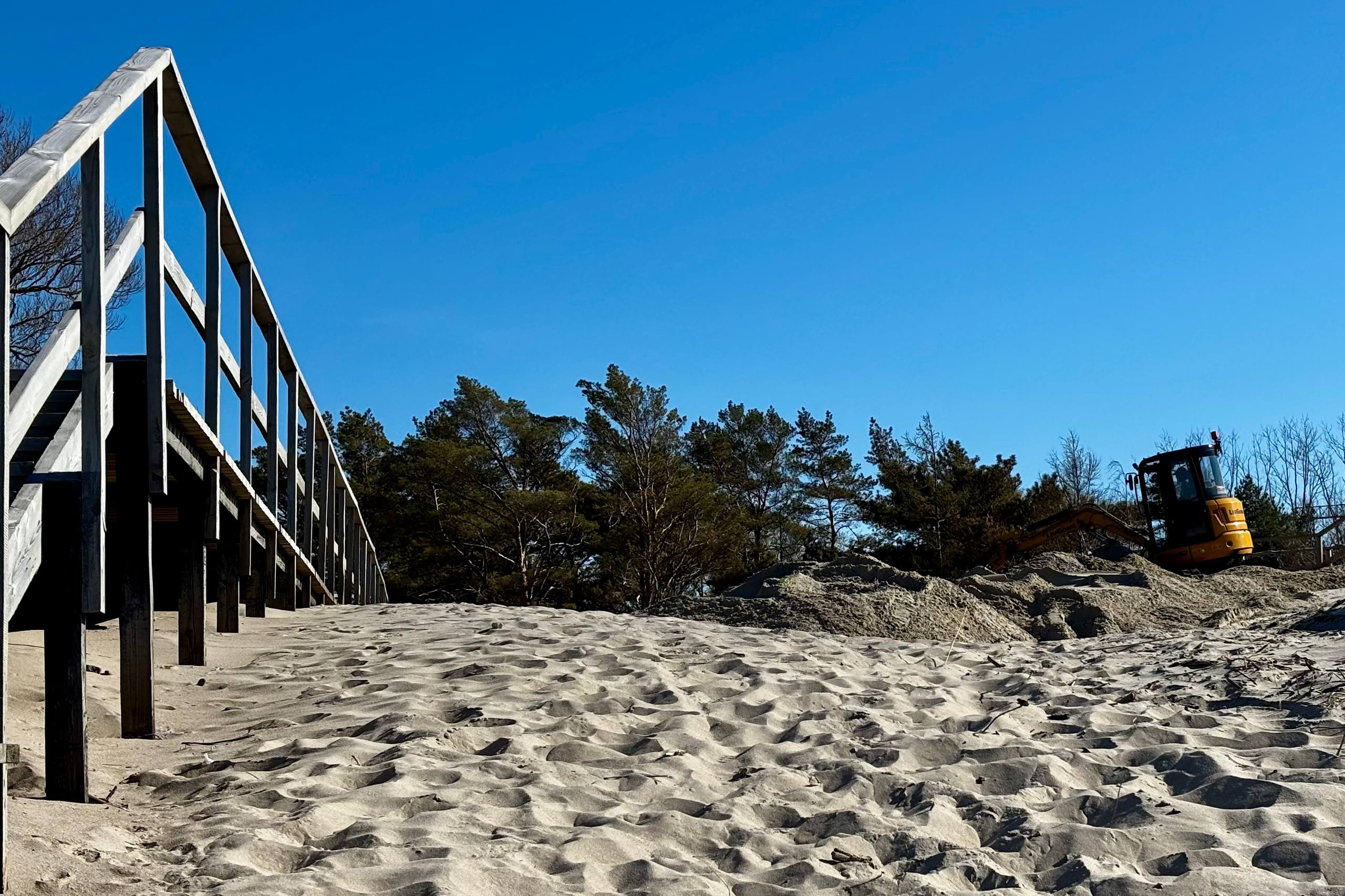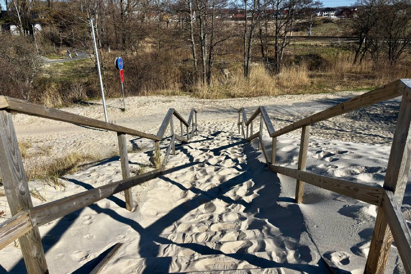 В западной части Зеленоградска расчищают занесённые лестницы через авандюну. Как передаёт корреспондент Калининград.Ru, в районе Малиновки работает техника, специалисты убирают песок со ступеней и настилов.
