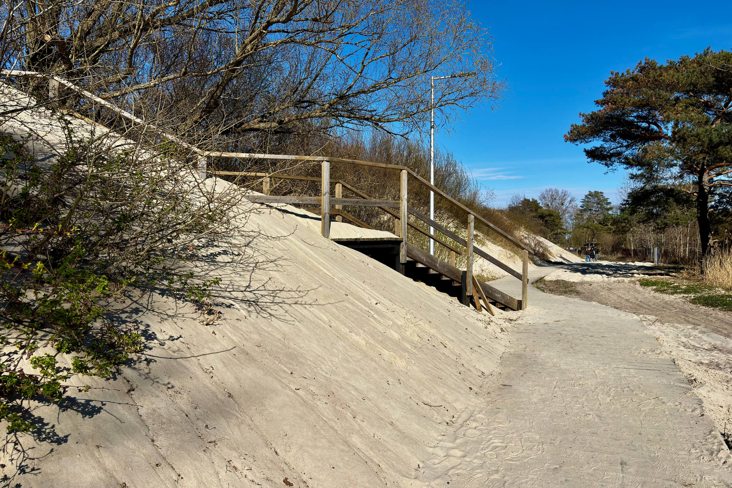 Переходы через авандюну в Зеленоградске построили в 2024 году. Работы выполняли на участке от западного пляжа до реки Алейки. Конструкции изготовили из древесины и обработали защитным составом. На спусках обустроили пандусы.