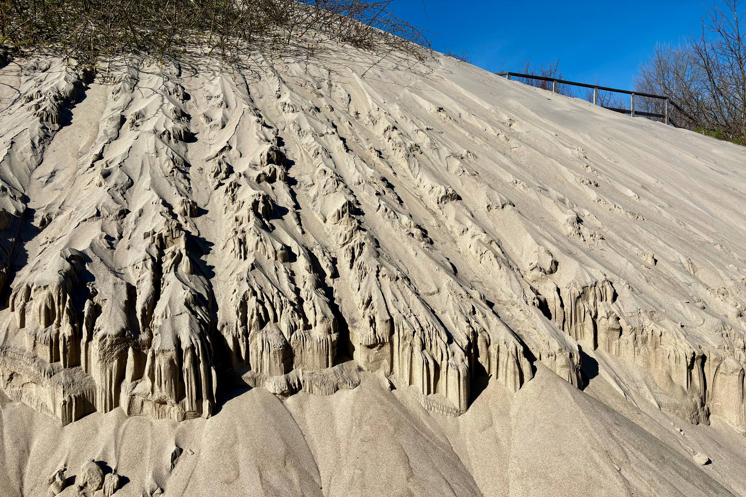 По замыслу властей, новые переходы должны защитить велодорожку от наносов песка. Однако в зимние месяцы некоторые лестницы оказались полностью засыпаны. Некоторые участки велодорожки также покрыты песком.