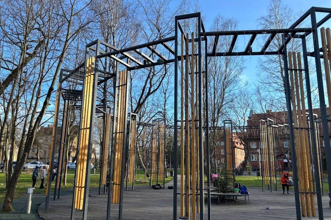Подвесные скамейки установили в парке «Вектор» в 2023 году. К концепции благоустройства и в техническом задании для подрядчика, который проводил работы, указывается, что конструкция является качелями. Они появились, когда территорию приводили в порядок. Однако в октябре 2024 года власти Зеленоградска попросили не кататься на качелях в парке. «В парке у гимназии „Вектор” установлены подвесные лавочки, а не детские качели, и их нужно использовать по назначению», — подчёркивали в мэрии муниципалитета.