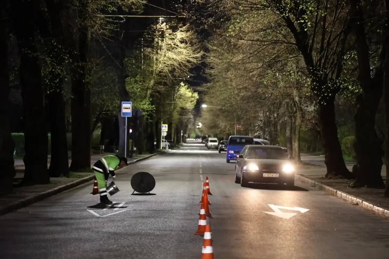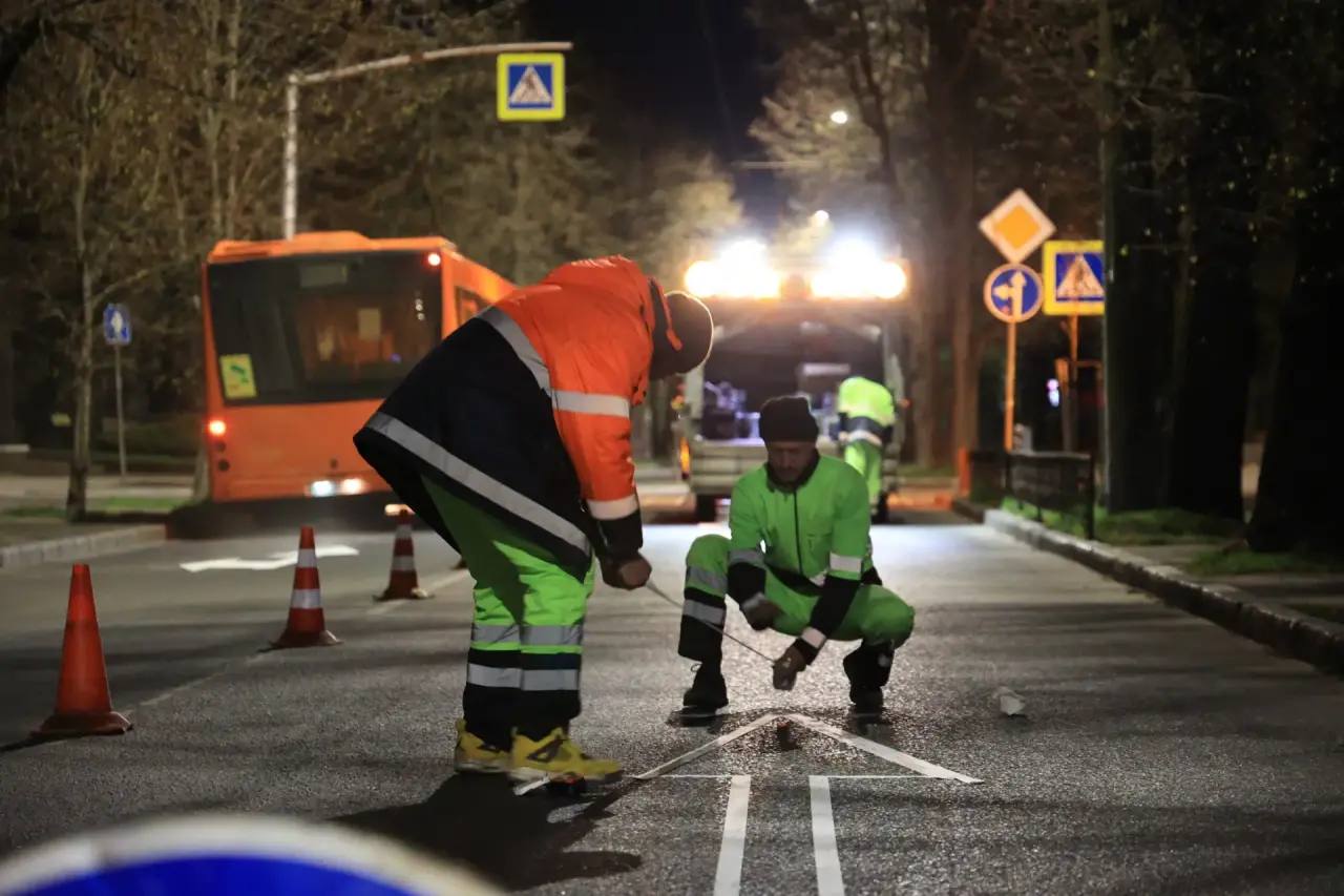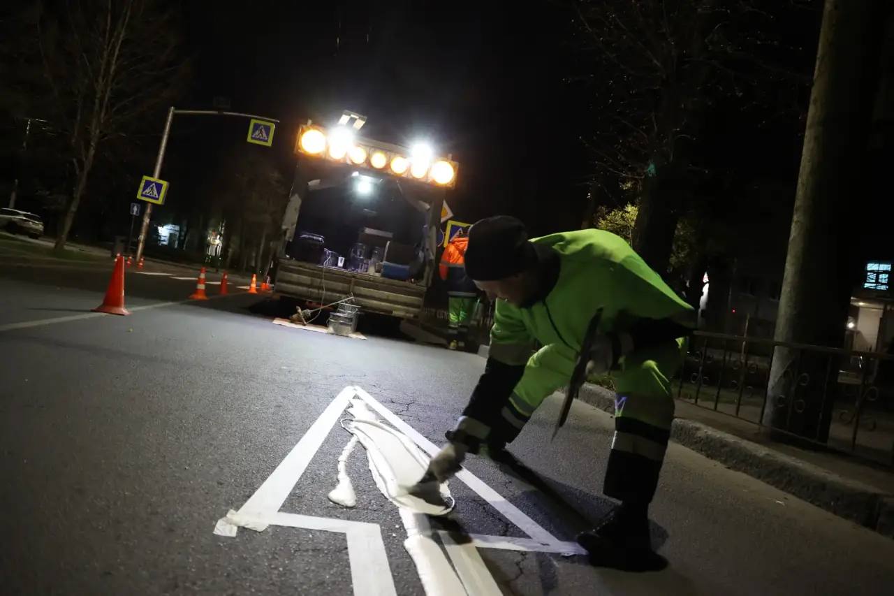 По её словам, работы организовали в ночное время, чтобы не создавать помех для дневного трафика. Специалисты наносят линии вручную, чтобы производить меньше шума. Они используют холодный пластик, который гарантирует долговечность разметки.