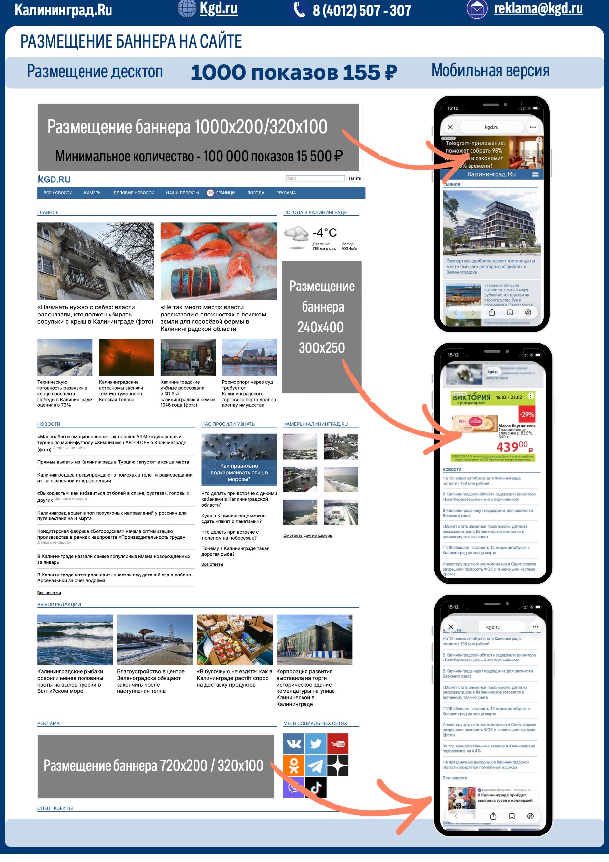 92% наших посетителей не использует блокировщики рекламы. 600 тысяч уникальных пользователей и 3 миллиона просмотров в месяц на Калининград.Ru